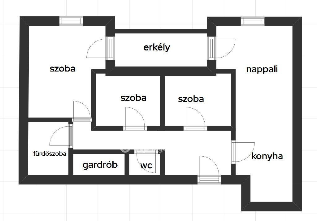 A lakás kiváló elrendezésű: mindhárom hálószoba külön bejáratú, így nagyobb család számára is ideális választás lehet.
