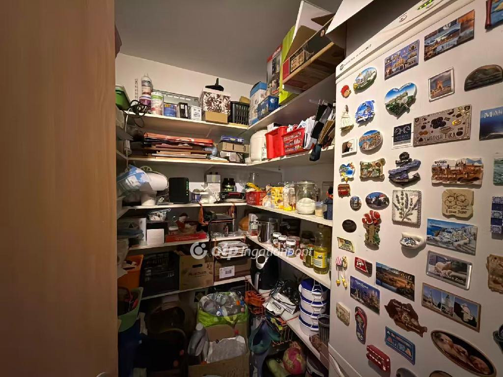 Az amerikai konyhás nappali mellett egy 4 nm-es kamra/tároló helyezkedik el. A közel 7 nm-es fürdőszoba tágas, káddal, mosógéppel és szárítógéppel felszerelt, a WC külön helyiségben található. A konyha teljesen gépesített, elektromos főzőlap, sütő, páraelszívó és mosogatógép is a felszereltség része.