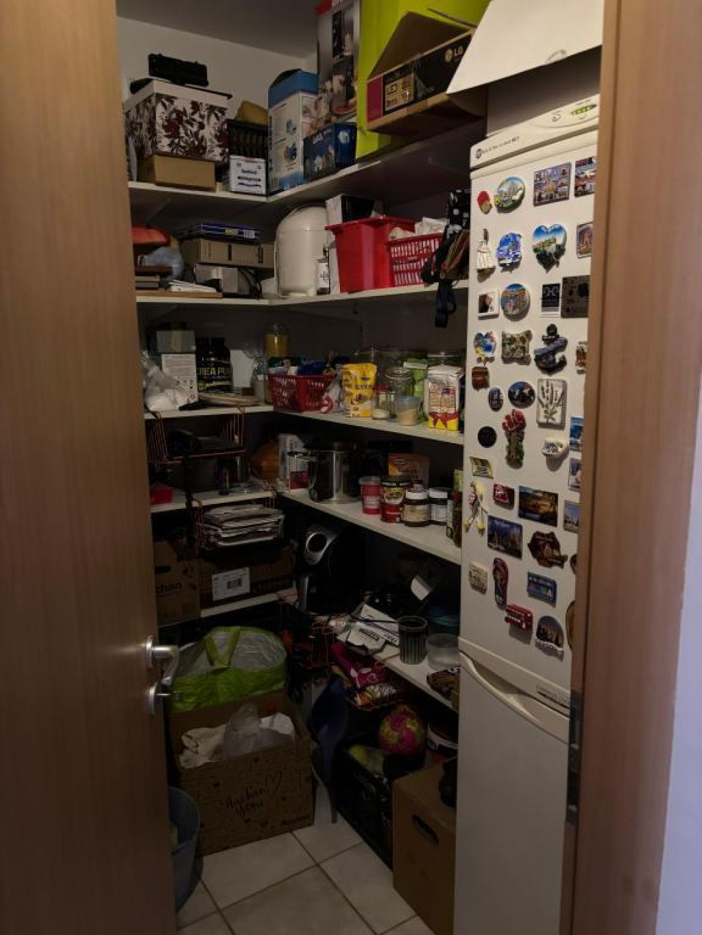 Az amerikai konyhás nappali mellett egy 4 nm-es kamra/tároló helyezkedik el. A közel 7 nm-es fürdőszoba tágas, káddal, mosógéppel és szárítógéppel felszerelt, a WC külön helyiségben található. A konyha teljesen gépesített, elektromos főzőlap, sütő, páraelszívó és mosogatógép is a felszereltség része.