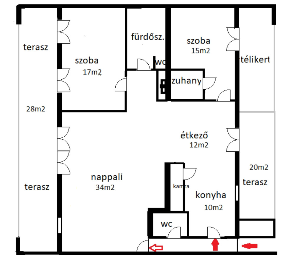 A lakáshoz 2 TERASZ tartozik, mely kiválóan alkalmas JACUZZI, SZAUNA, grillsütő kialakítására, hideg-melegvizes zuhany kivezetéssel rendelkezik.
