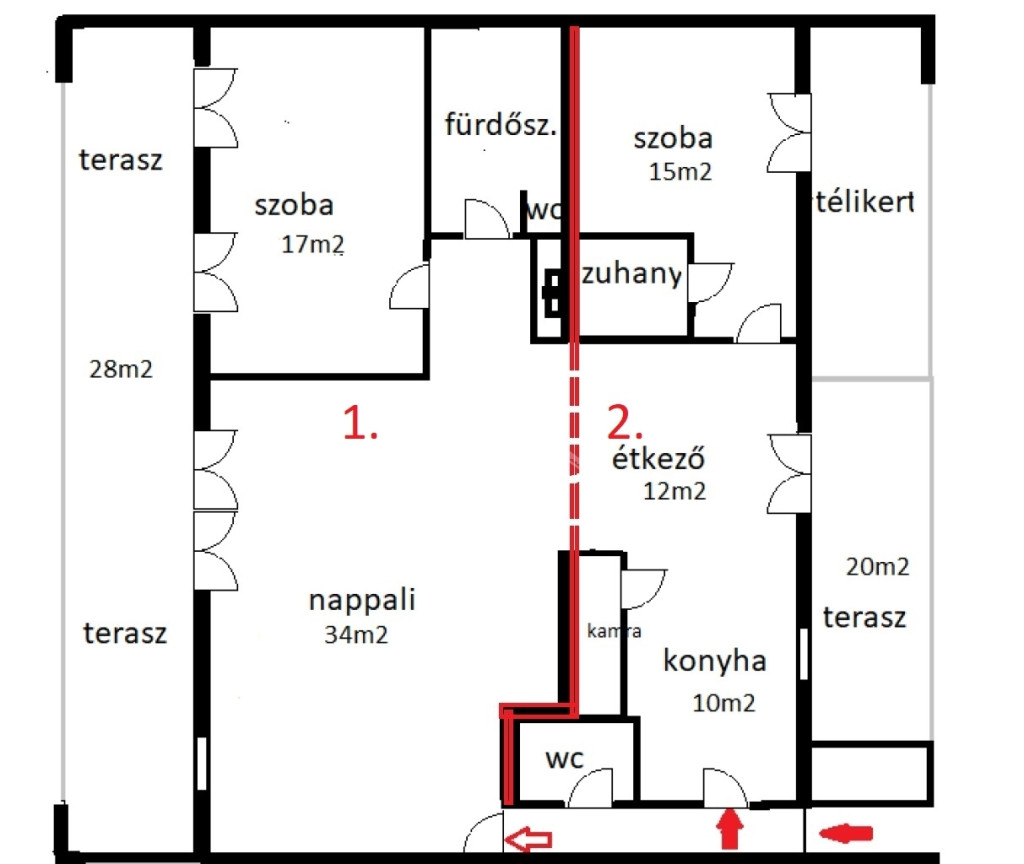 KÉT KÜLÖN HELYRAJZI SZÁMÚ LAKÁS, jelenleg egybenyitva de VISSZAÁLLÍTHATÓ  két különálló lakássá.