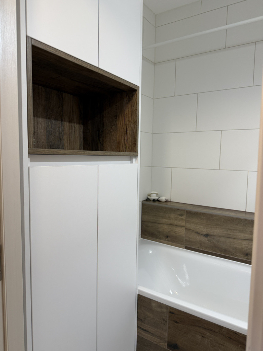 Minden beépített bútor asztalos által tervezett és kivitelezett.