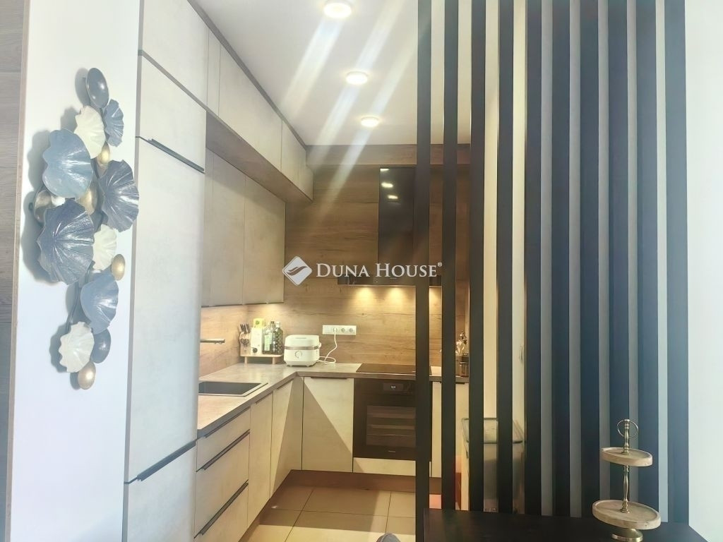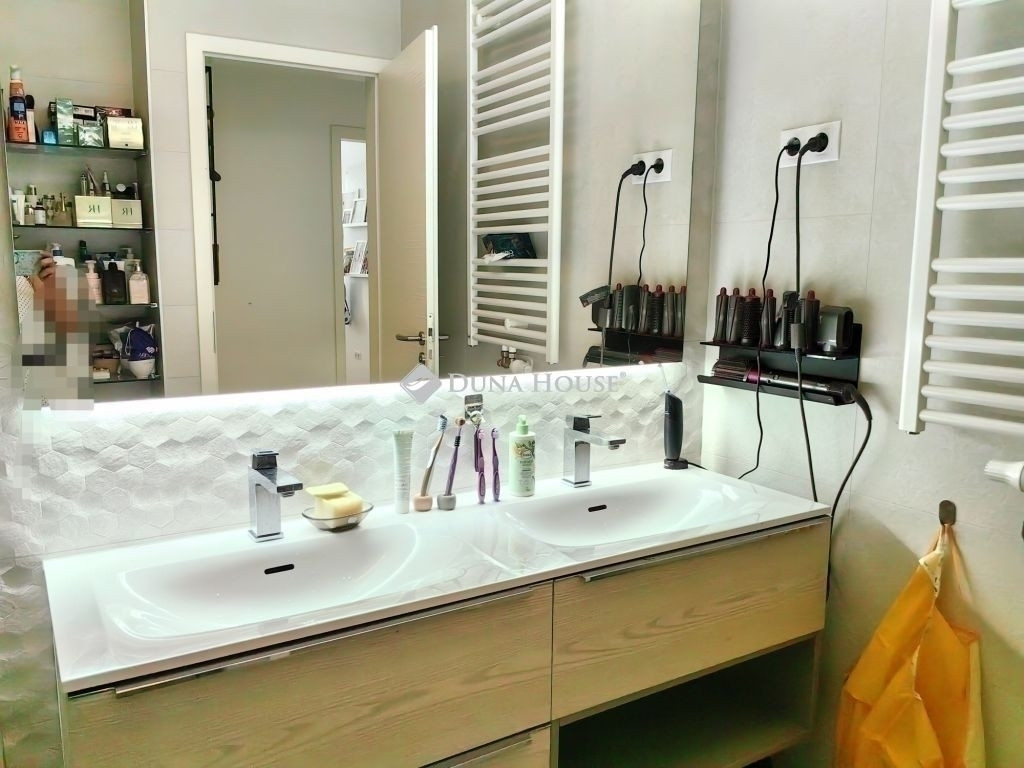 Főbb jellemzők:-74 nm lakótér+14 nm privát terasz-Jelenleg 3 szobás , de könnyűszerrel 4 szobássá alakítható , mert a fejlesztő eredeti kialakítása 4 szoba volt, két szobát nyitott egy tágas és kényelmes gyermekszobába.-Modern amerikai konyhával, prémium kategóriás beépített szekrények , körülbelül 10 millió értékűek. Elegáns fürdőszoba , mosókonyha és különálló WC-Belmagasság: 280 cm.