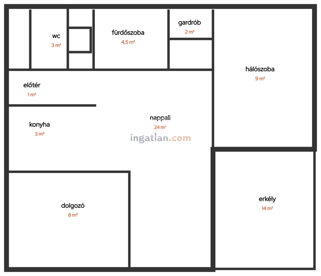 két főnek ideális, de akár egy kisgyermekkel is kényelmesen élhető, úgy, hogy a külön terek miatt a nyugalom és a privát szféra is megmarad.