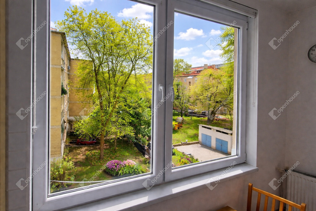 Részben utcai, részben zöld, csendes udvari kilátás