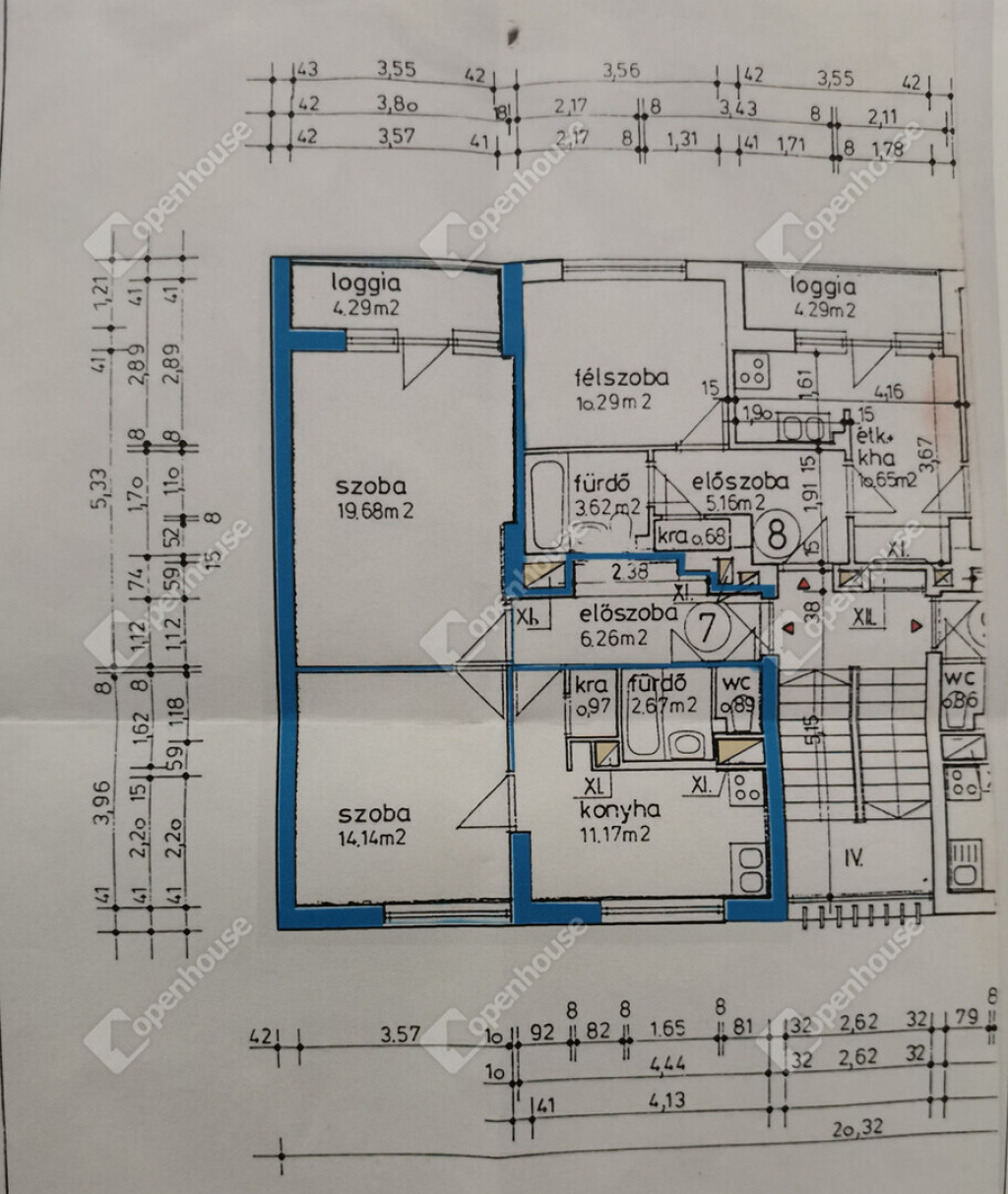 Konyha + fürdő + külön WC + háztartási helyiség