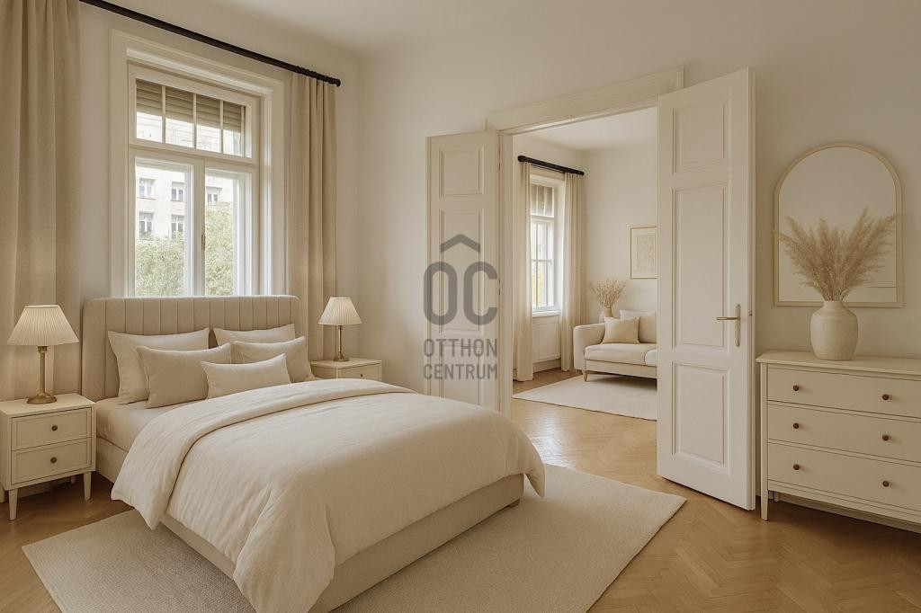 Nagyvonalú terek, igazi polgári életérzés. Az eredeti parketta, a hatalmas kétszárnyú ajtók és a kor hangulata magával ragadja azokat, akik szeretik a klasszikus eleganciát. Egy otthon, amelyben minden részlet a múlt értékeit idézi – azoknak ajánlom, akiknek fontos a stílus és a karakter.