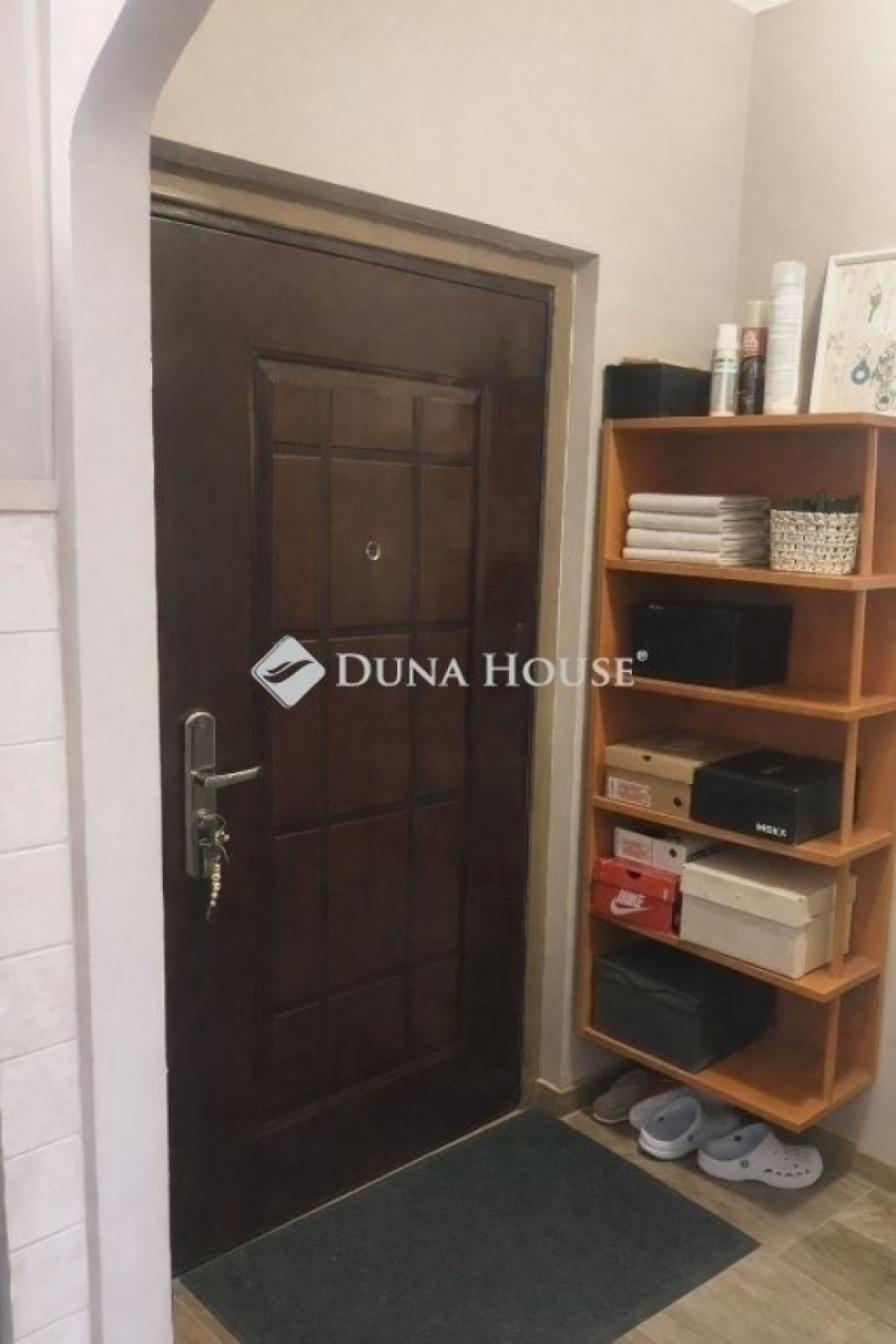 A lakásba belépve az előszobába érkezünk, ahol két rejtett tárolóhelyiség található.