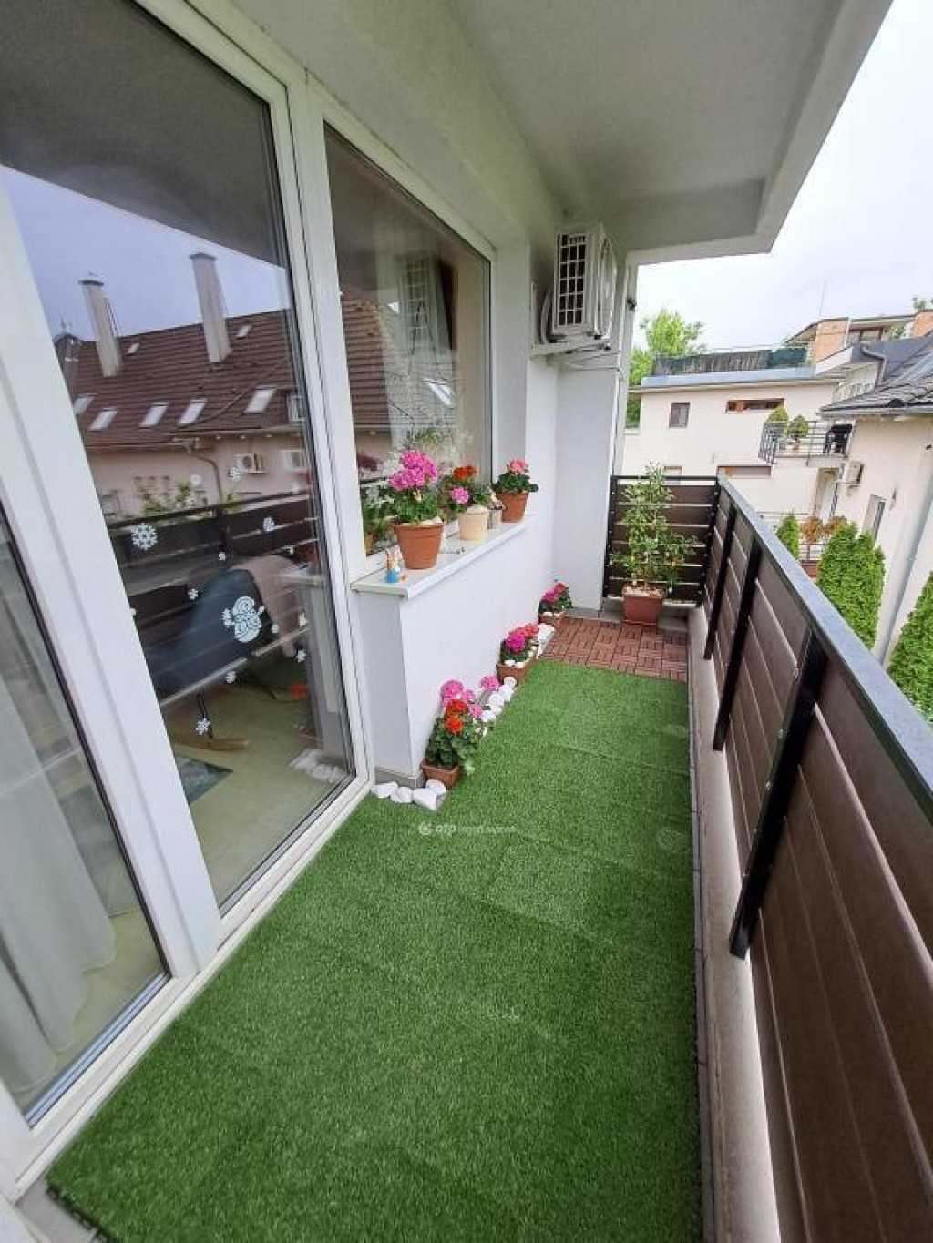 Napfényes Életérzés: Első emeleti, 77 nm-es, DNy-i fekvésű lakás, amely egész nap fényárban úszik. Az ablakok és a tágas 11,7 nm-es erkély (részben beépítve: 2,25 nm) kizárólag a környező, gondozott kertekre néznek, garantált a nyugalom és a szép kilátás.
