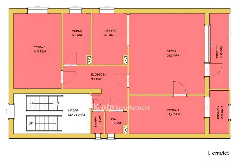Ideális Elrendezés: 2 szoba, 1 félszoba, gardrób, konyha, kamra, fürdőszoba és külön WC tökéletes elosztás kis- és nagycsaládok számára egyaránt.