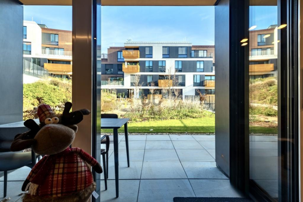 - A nappaliból a tágas teraszra léphetünk ki, ahol saját kertkapcsolattal rendelkező kertrész biztosítja a pihenési lehetőséget.