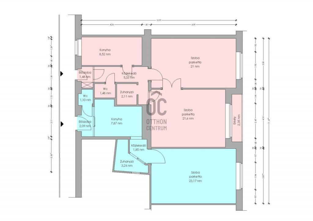 - Nagyobb lakrész beosztása: közlekedő, konyha (külön szobává alakítható), 2 nagy szoba, fürdőszoba, külön wc.