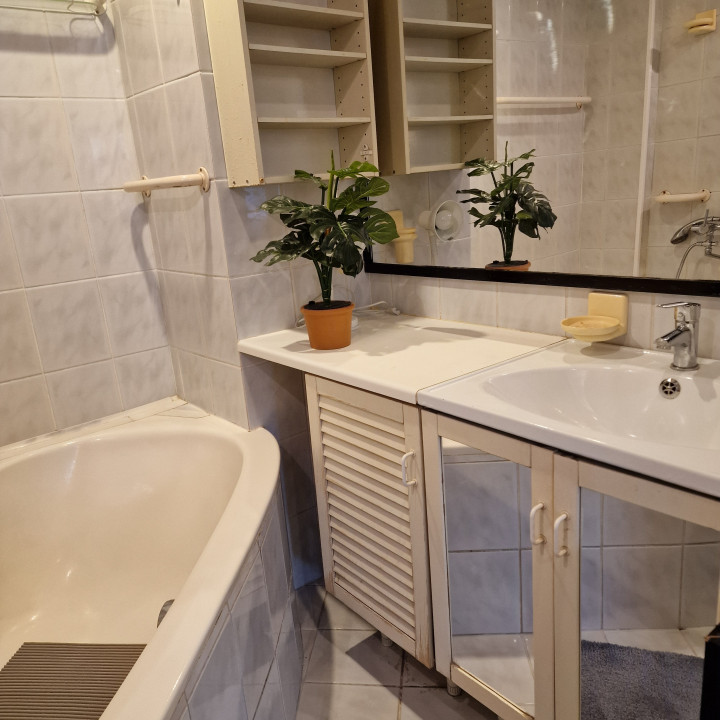 A szobából nyílik a kényelmes sarokkádas, mosdós fürdőszoba.