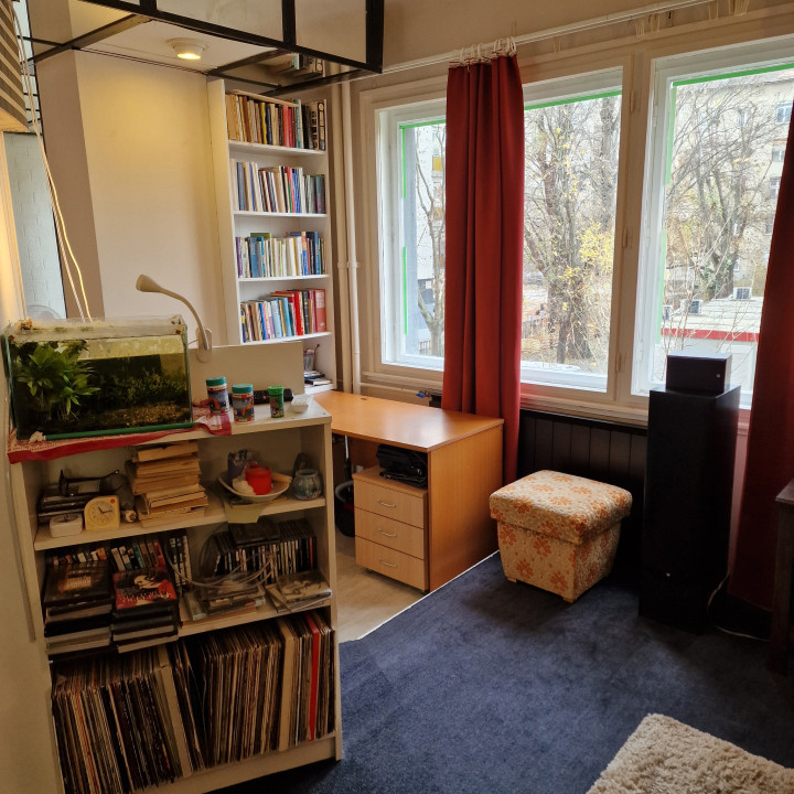 Természetesen gipszkarton beépítésével visszaállítható az eredeti alaprajz, de a lakás ügyes átalakítással akár másfél szobássá is alakítható.