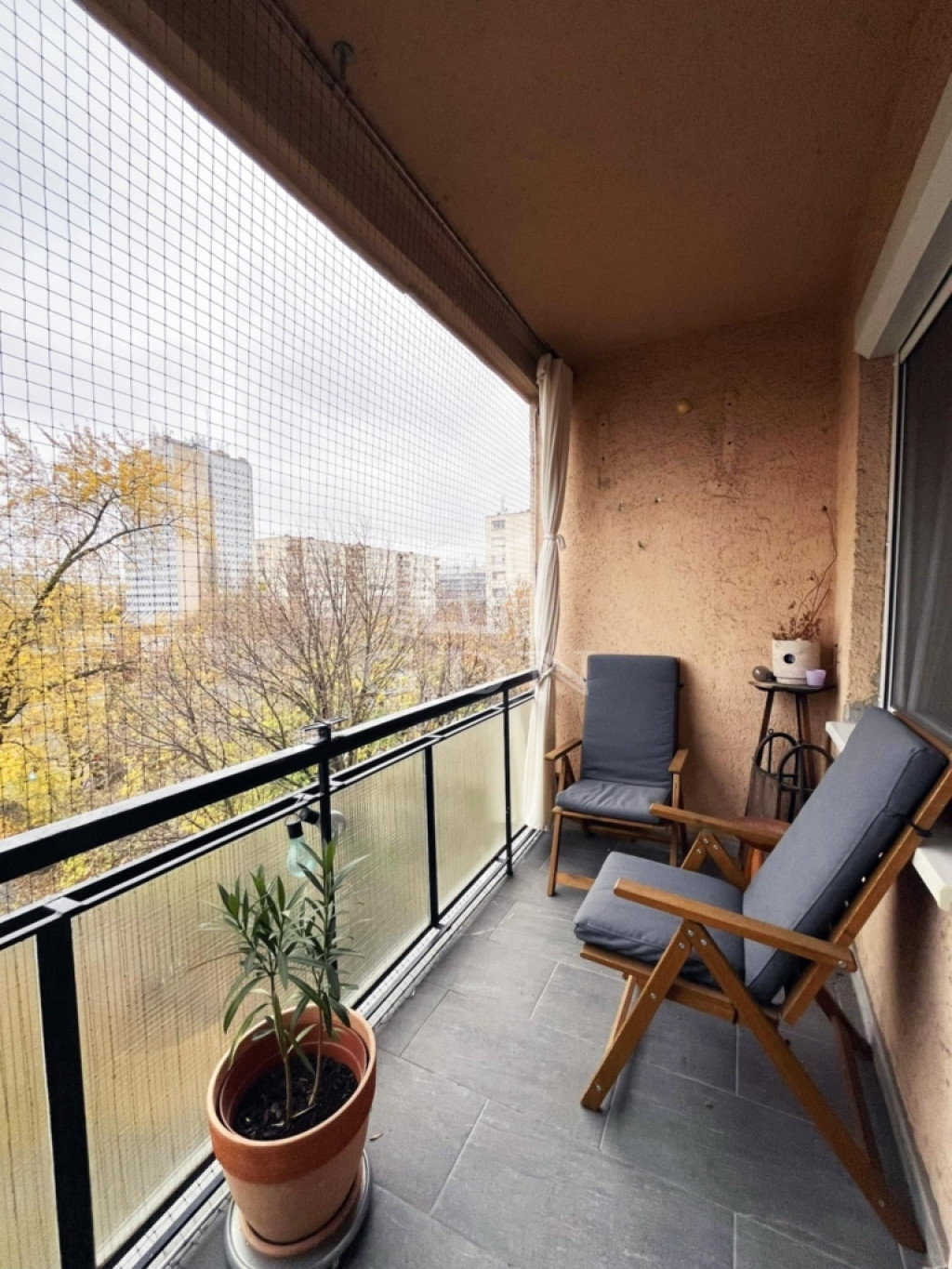 Fás parkra néző erkély – reggeli kávé + friss levegő = tökéletes páros.