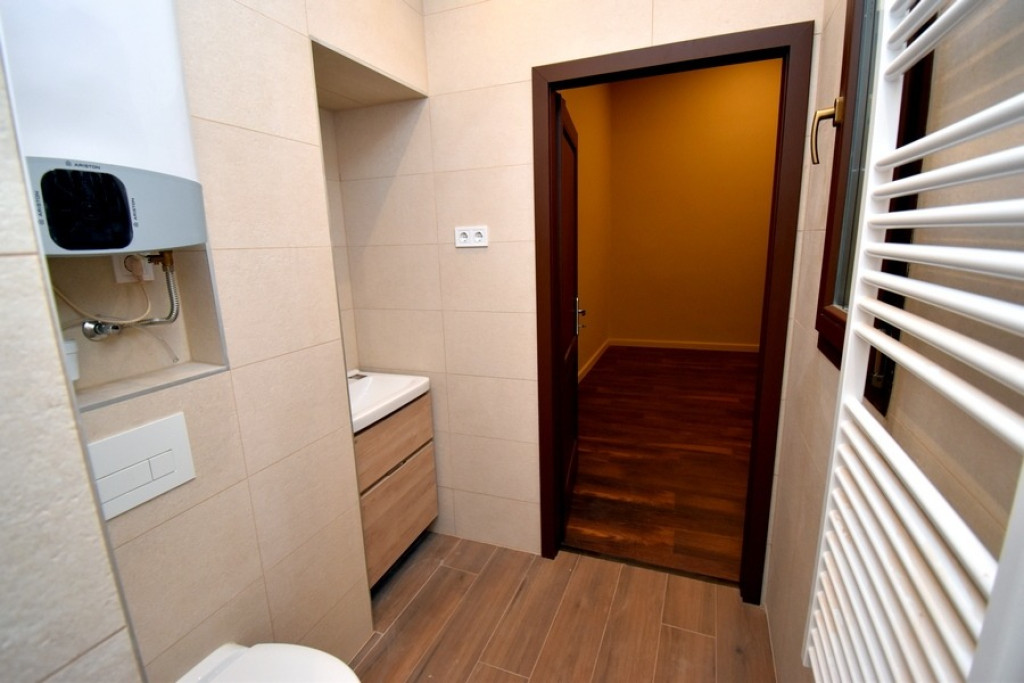 A felújítás során minden részletre odafigyeltek: a modern elektromos fűtés és a klíma gondoskodik a tökéletes hőmérsékletről egész évben, míg a prémium burkolatok és a harmonikus színek elegáns, mégis otthonos hangulatot teremtenek. A szoba új, fa nyílászárói elektromos redőnnyel felszereltek.