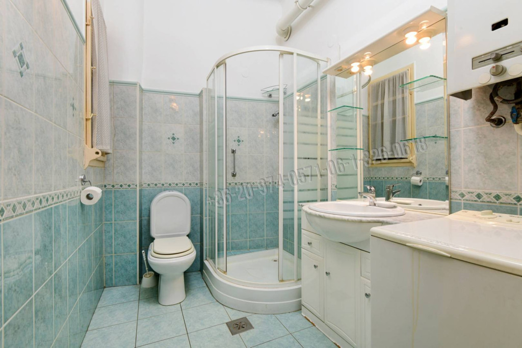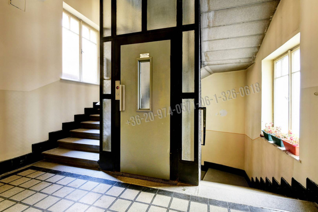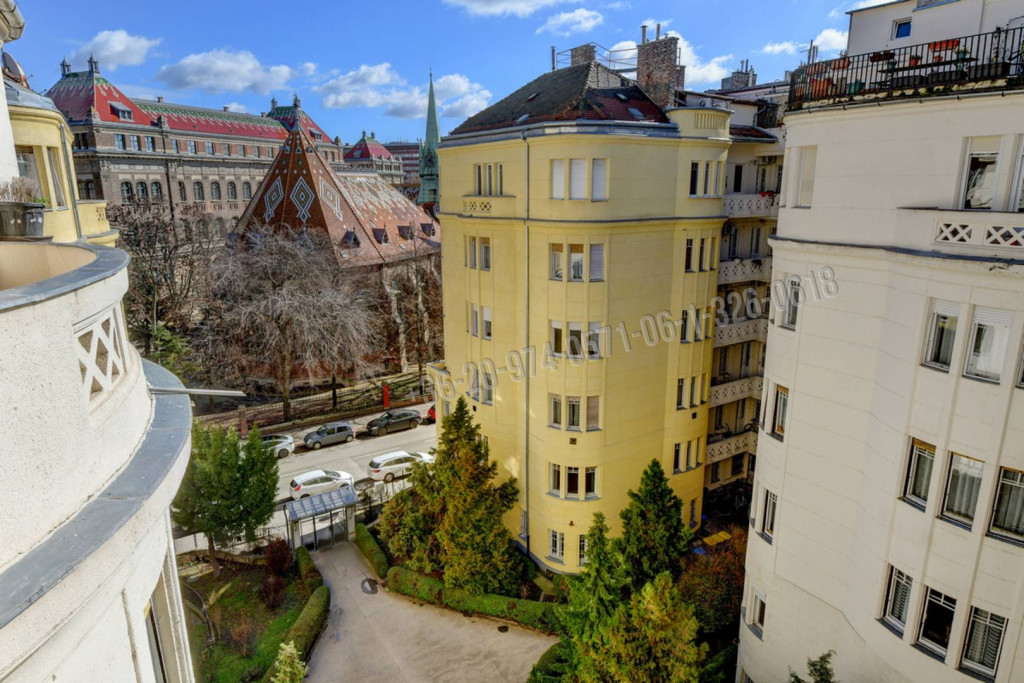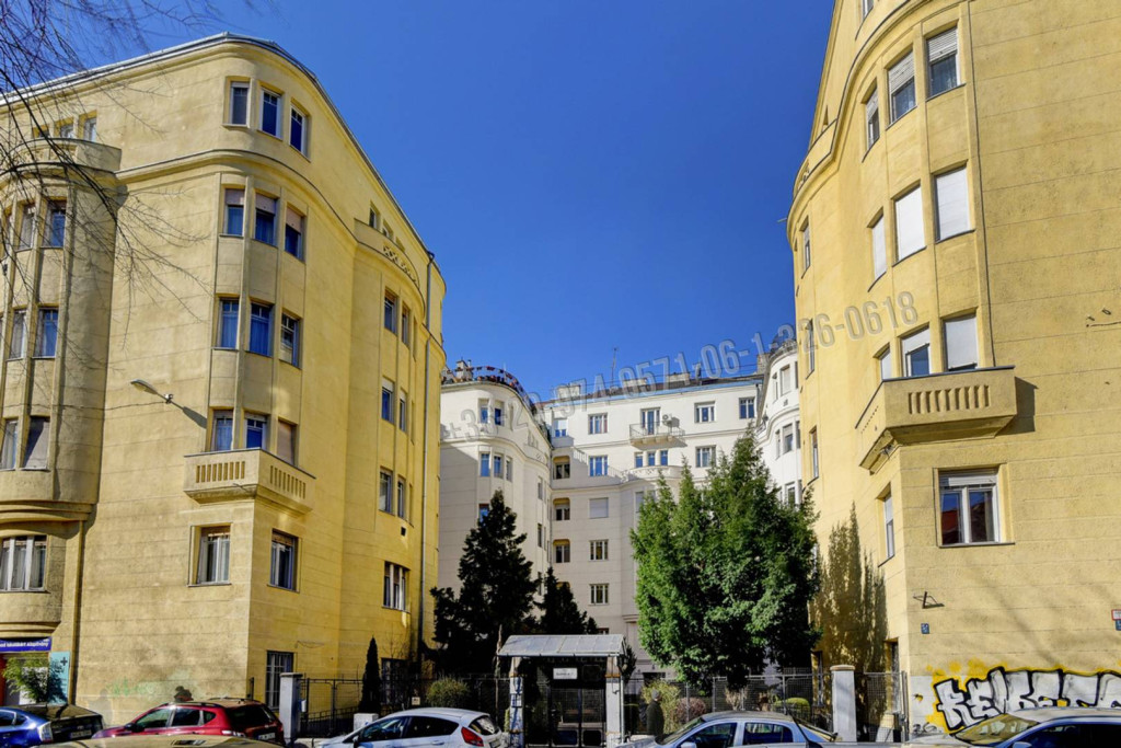 3 egymás melletti, egybe és külön is nyitható nagyszoba. A középső jelenleg a nappali - étkező, melyből hangulatos beépített lodgiára léphetünk. A lodgiáról és egy másik nagyszobából is közvetlen rálátással a BME könyvtár épületére. Egy 4. kisebb szoba a lakás másik oldalán található. Külön nyíló tágas konyha étkezővel és kamrával. Széles előszoba, másik közlekedőn beépített szekrények. Zuhanyzós fürdőszoba wc-vel. Vendégmosdó bidével is. Belmagasság: 310 cm.