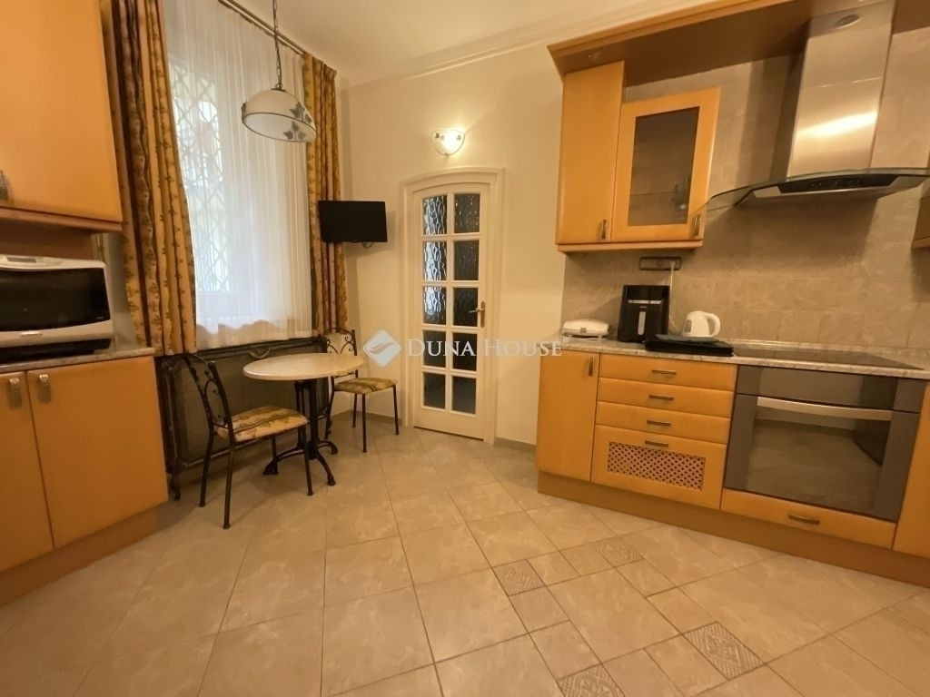 A magasföldszinten található, 74 négyzetméteres lakás ablakai kertre néznek,előttük közvetlenül zöld lombú fák állnak, így reggelente madárcsicsergésre ébredhetünk. Az ajtón belépve tágas terek fogadnak: nagy, kényelmes szobák, jól felszerelt konyha étkezővel. A konyha nagyméretű ablaka a ház belső udvarára néz. A sarokkádas fürdőszoba tágas, letisztult és praktikus. A lakásban található még egy 2 nm-es, ablakos helyiség, amely kiválóan alkalmas akár dolgozószobának, vagy gardróbnak is.