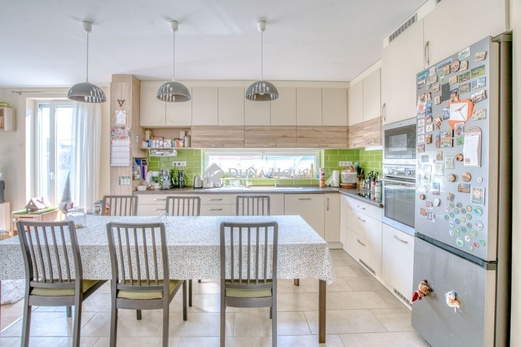 A lakás alapterülete 103 m² amelyhez tartozik egy 32 m² -es terasz saját kert résszel. A remek elrendezésnek köszönhetően megfelelő családosoknak vagy család alapításban gondolkodóknak a 3 szoba és tágas nappali- konyha, továbbá a mindennapokat meg jobban könnyítve két fürdőszoba. Ezen felül még egy 15 m² -es teremgarázs és egy 6 m² -es tároló tartozik, ami a lakás mellé kötelezően megvásárolandó.