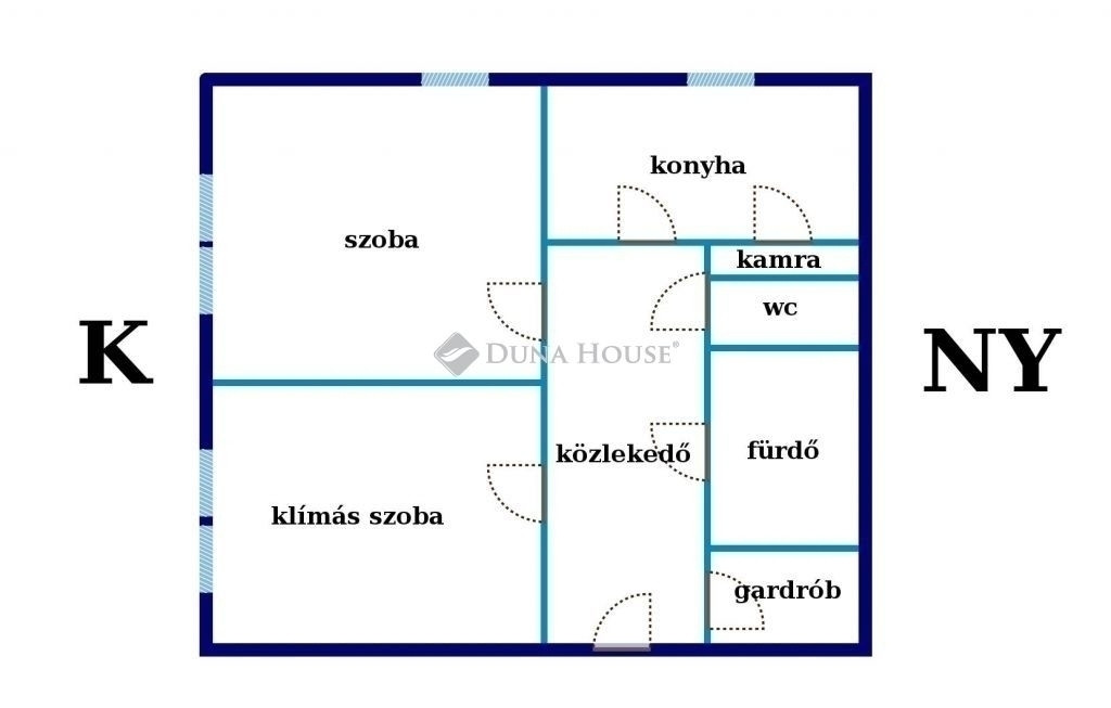 Az 52 nm-es jó állapotú, földszinti lakás 2 szobás, keleti fekvésű, a szobái külön bejáratúak.