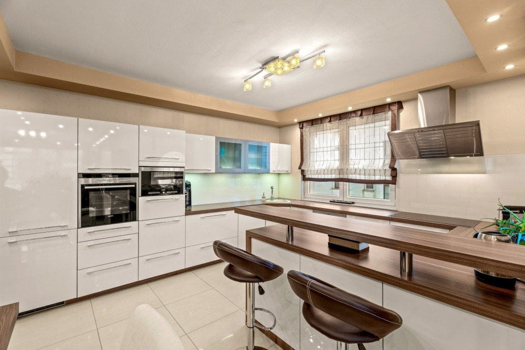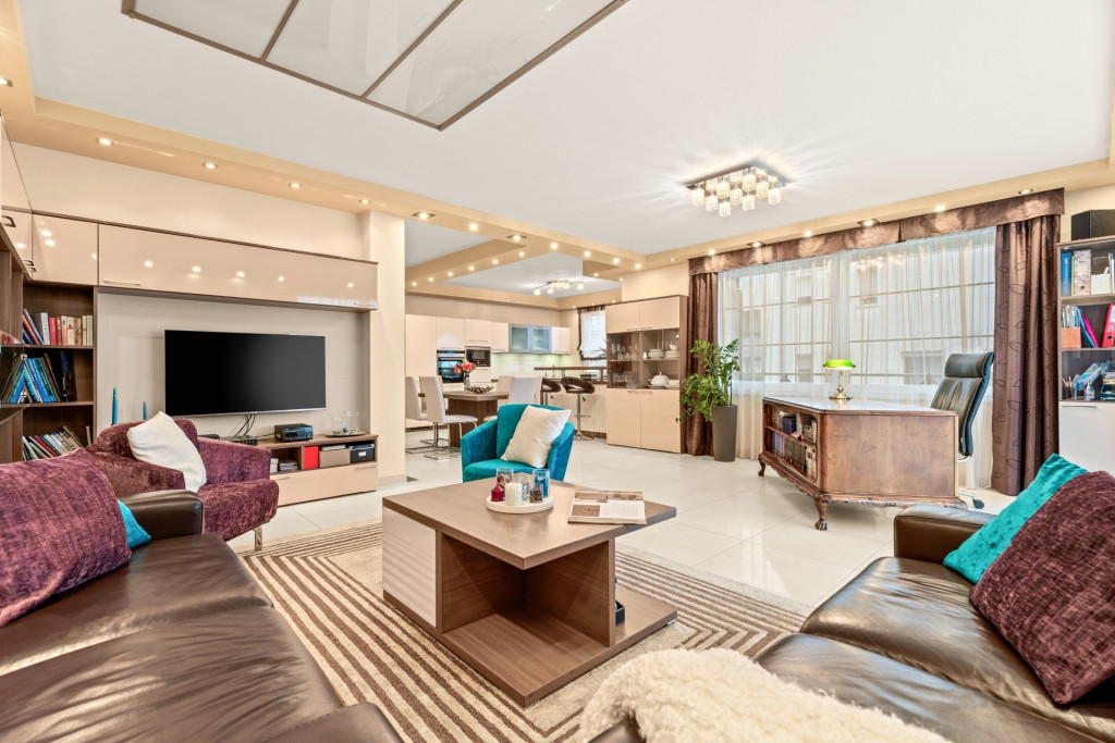 A nettó 136 m2-es ingatlant impozáns terek, átgondolt tervezés, prémium burkolatok és beépített bútorok teszik egyedivé. Az első emeleti lakásban tágas, déli tájolású, amerikai konyhás nappali terasszal, 3 hálószoba, 1 félszoba mely jelenleg gardróbként funkcionál, fürdőszoba (zuhanyzóval és káddal) és külön WC/mosókonyha került kialakításra.