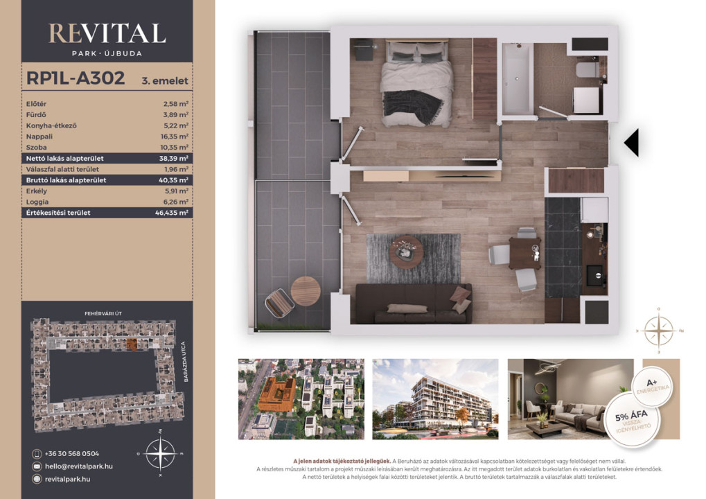 Frekventált elhelyezkedés, fejlődő környezet A Revital Park a XI. kerület szívében, a Fehérvári út 120. szám alatt épül, kiváló közlekedési kapcsolatokkal: a közelben több villamosjárat (1-es, 41-es, 47-es), buszmegállók és metróvonal is elérhető, az autós közlekedés számára pedig az M1–M7–M0 útvonalak néhány percen belül elérhetők. A környék szolgáltatásokban gazdag – a közelben bevásárlóközpontok (Savoya Park, Allee), helyi piac, bölcsődék, iskolák, rendelők, sport- és rekreációs lehetőségek is találhatók. A Feneketlen-tó, a Bikás park és a Duna-part 15 percen belül elérhetők gyalogosan – így a zöld nyugalom és a városi dinamika valóban kéz a kézben jár.