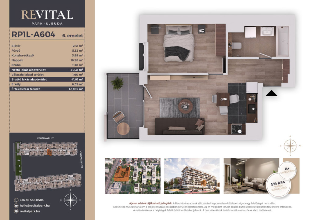 Frekventált elhelyezkedés, fejlődő környezet A Revital Park a XI. kerület szívében, a Fehérvári út 120. szám alatt épül, kiváló közlekedési kapcsolatokkal: a közelben több villamosjárat (1-es, 41-es, 47-es), buszmegállók és metróvonal is elérhető, az autós közlekedés számára pedig az M1–M7–M0 útvonalak néhány percen belül elérhetők. A környék szolgáltatásokban gazdag – a közelben bevásárlóközpontok (Savoya Park, Allee), helyi piac, bölcsődék, iskolák, rendelők, sport- és rekreációs lehetőségek is találhatók. A Feneketlen-tó, a Bikás park és a Duna-part 15 percen belül elérhetők gyalogosan – így a zöld nyugalom és a városi dinamika valóban kéz a kézben jár.