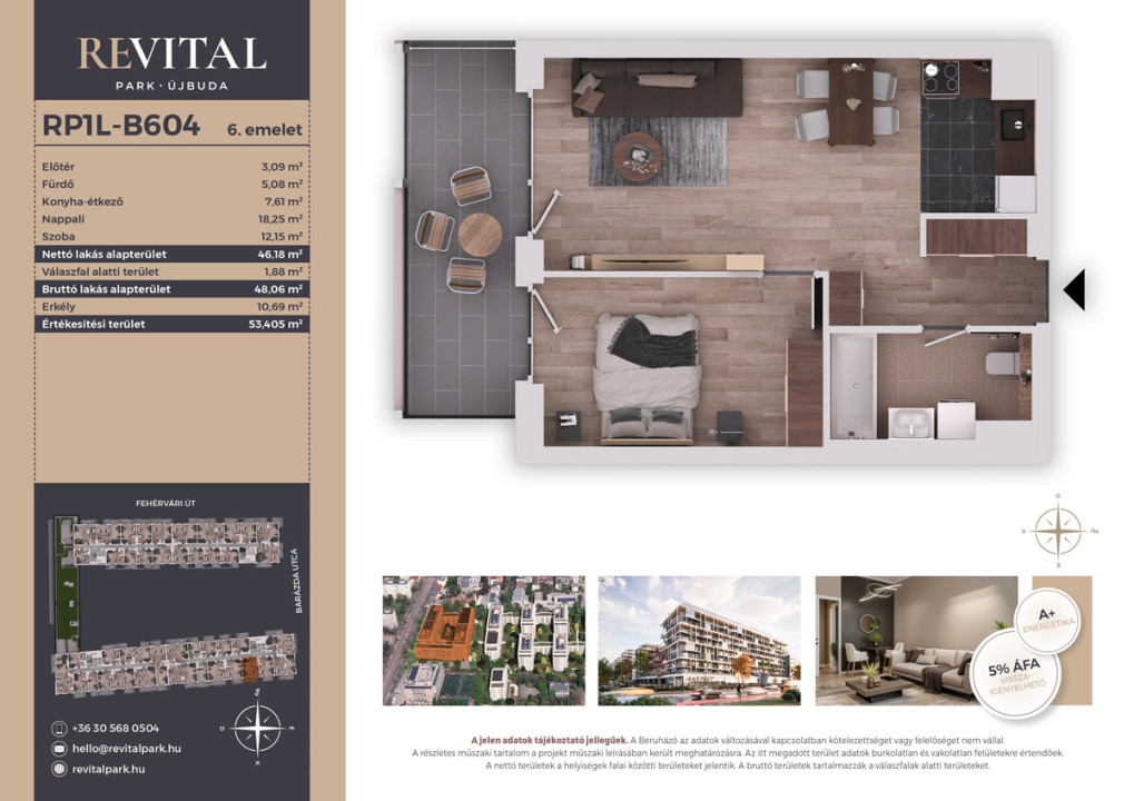 Frekventált elhelyezkedés, fejlődő környezet A Revital Park a XI. kerület szívében, a Fehérvári út 120. szám alatt épül, kiváló közlekedési kapcsolatokkal: a közelben több villamosjárat (1-es, 41-es, 47-es), buszmegállók és metróvonal is elérhető, az autós közlekedés számára pedig az M1–M7–M0 útvonalak néhány percen belül elérhetők. A környék szolgáltatásokban gazdag – a közelben bevásárlóközpontok (Savoya Park, Allee), helyi piac, bölcsődék, iskolák, rendelők, sport- és rekreációs lehetőségek is találhatók. A Feneketlen-tó, a Bikás park és a Duna-part 15 percen belül elérhetők gyalogosan – így a zöld nyugalom és a városi dinamika valóban kéz a kézben jár.