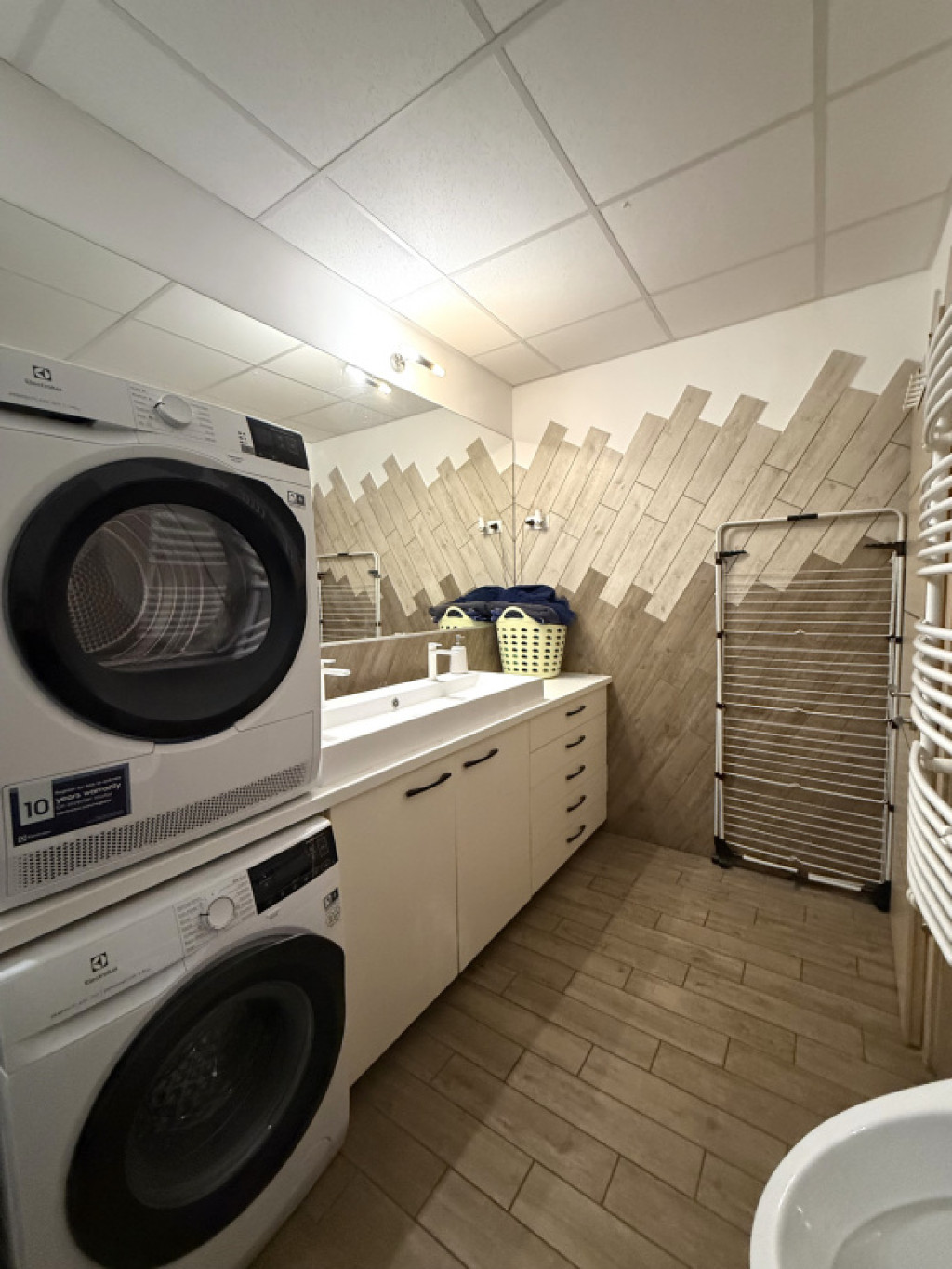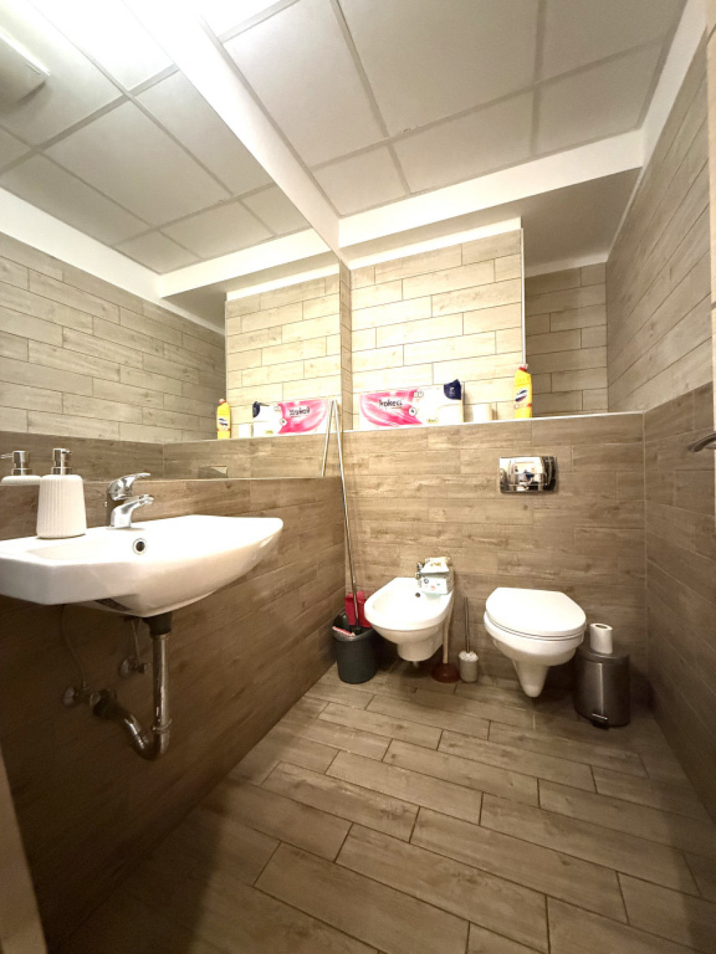 Külön kialakításra került egy kézmosóval és bidével felszerelt wc.