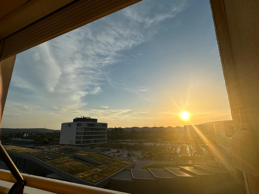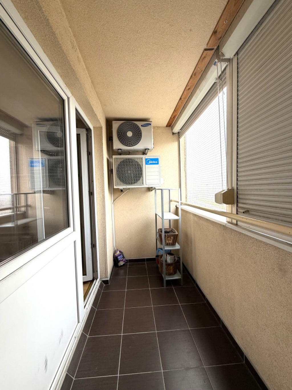 Eladásra kínálok egy 51 m2 alapterületű két szobás, két erkélyes panel társasházi lakást. A lakás a 8.emeleten helyezkedik el, északnyugati tájolású. A nappali 18 m2 alapterületű, erkéllyel. A hálószoba 13 m2 külön nyíló, erkélyes, mind két szoba légkondicionált. A konyha konyhabútorral, villanytűzhellyel, elektromos főzőlappal, szag-pára elszívóval felszerelt. A fürdőszoba mosdóval, zuhanyzóval felszerelt, a toalettel egy helységben kapott helyet. A bejárat mellett beépített szekrényes gardrób kapott helyet, ami mellett egy külön beépített tároló szekrényes gardrób került kialakításra a mosógép kiállással. A lakásban felújításra került a villamos hálózat, vízvezetékek, új műanyag nyílászárók kerültek beépítésre, fém biztonsági ajtóval, új burkolattal és szaniterrel, redőny került az erkélyekre. A szobákban a laminált parketta cseréje időszerű lehet. A fűtésről és a meleg vízről távhő gondoskodik, vízórával felszerelt lakás.