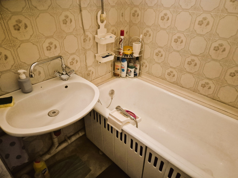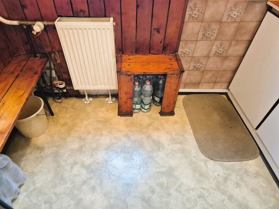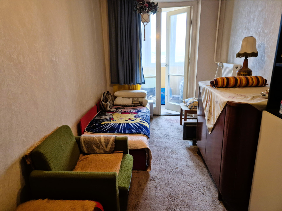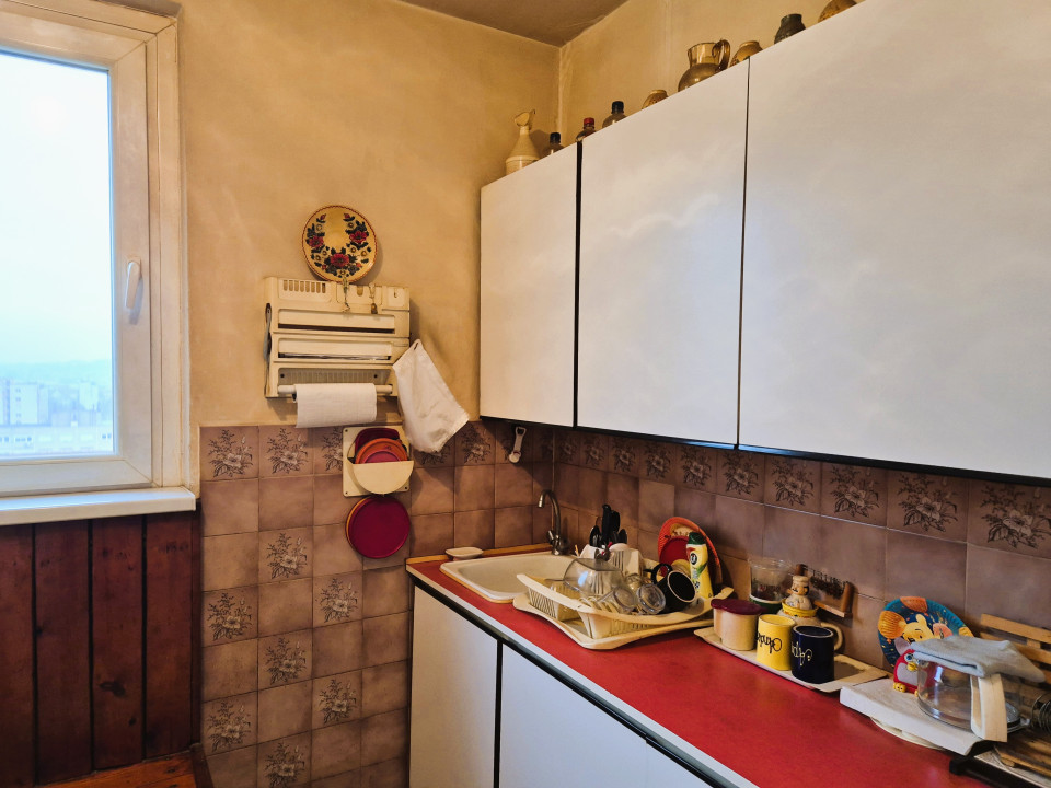 ABLAKOS - térséges - benne átlagos állapotú konyhabútor, villanytűzhely.
