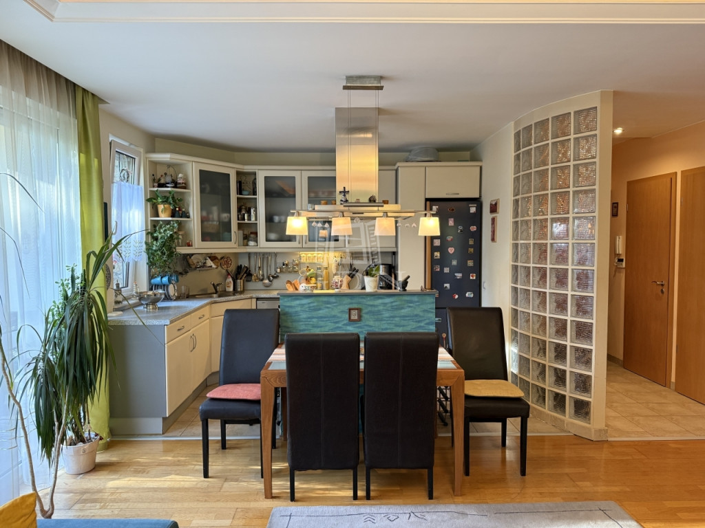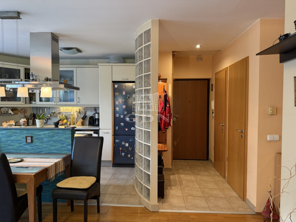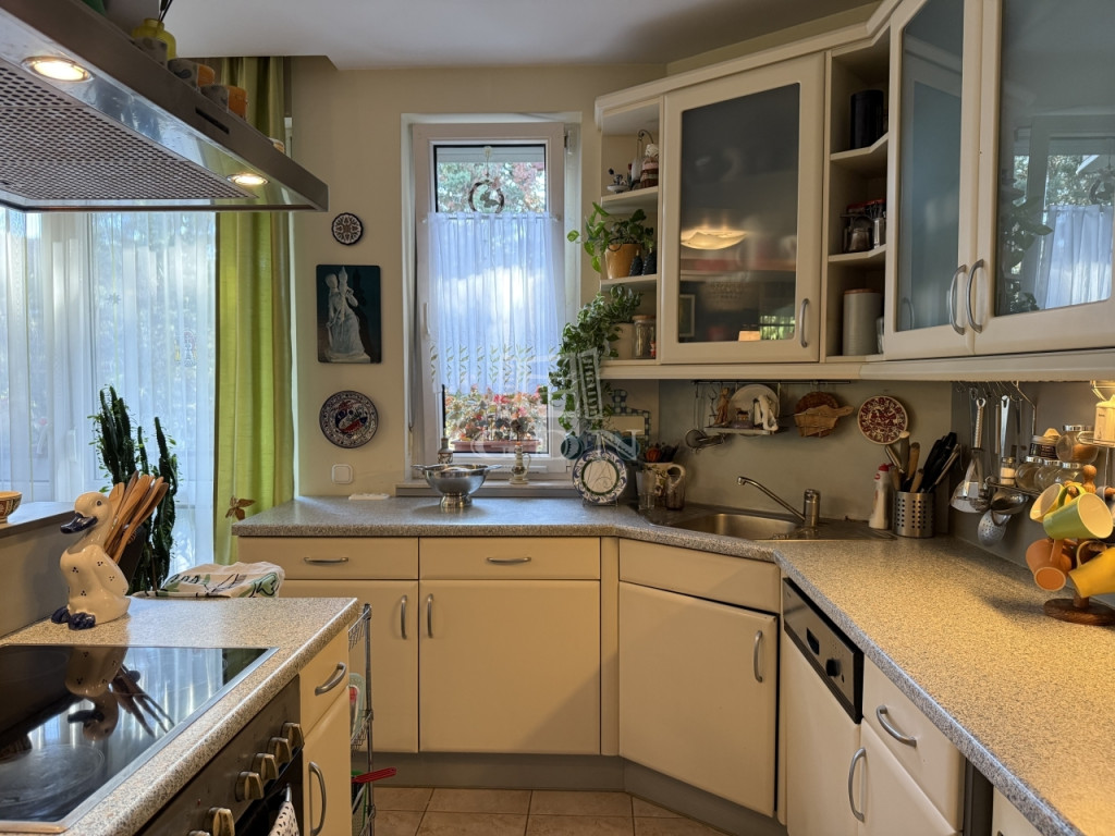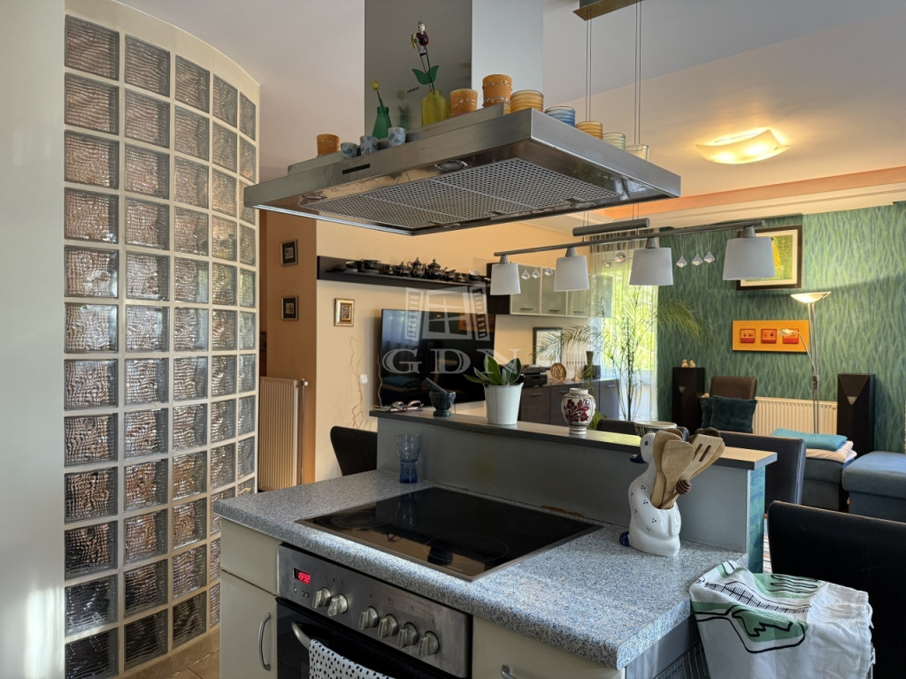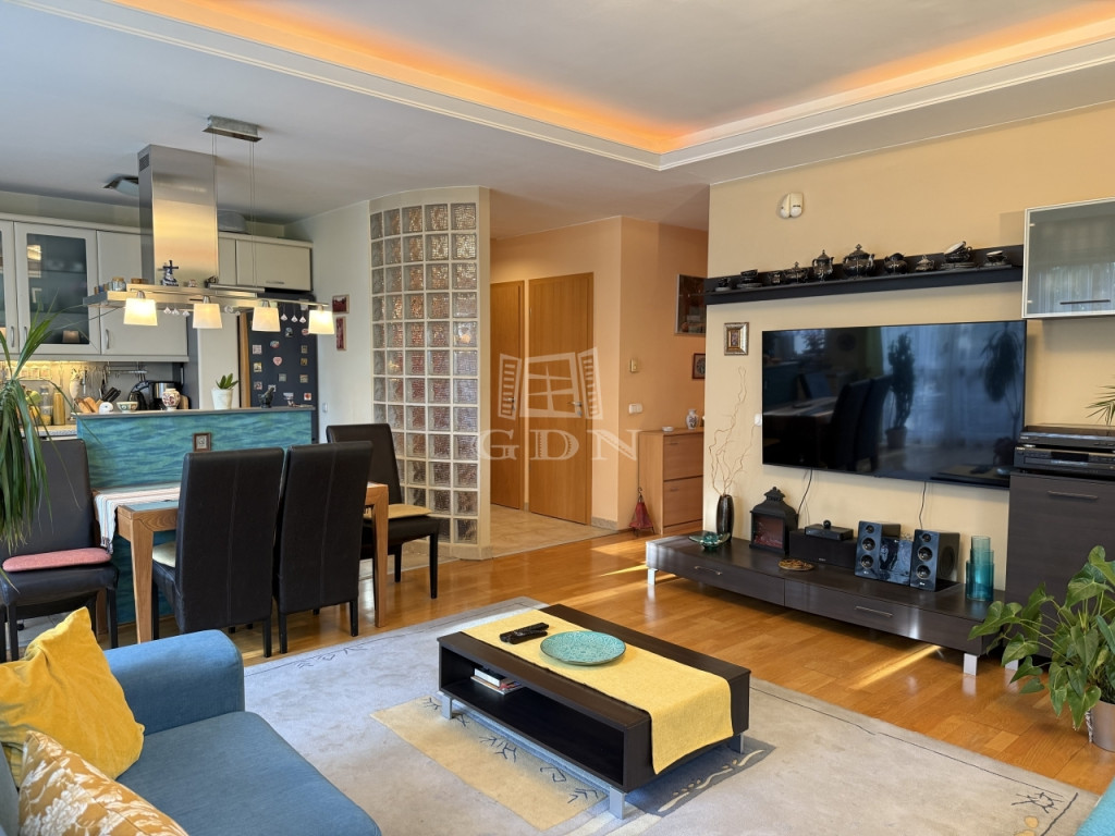 Az ingatlan 2004-ben épült, mindössze öt lakásos társasházban található, első emeleti, 81 m²-es, kifogástalan állapotú, amerikai konyhás nappalival és három hálószobával. A jól átgondolt elrendezés mellett két erkély (az egyik amerikai konyhás nappaliból nyílik, a másik pedig az egyik halószobából), ablakos fürdőszoba, külön vendég-WC, gardrób, két teremgarázs-hely és 7 m²-es tároló is tartozik hozzá.