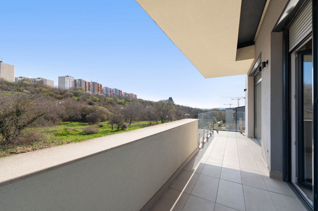 A lakás 106 m² alapterületű, belső két szinten helyezkedik el. Az átgondolt kialakításnak köszönhetően 4 hálószoba és egy tágas nappali áll rendelkezésre. Minden helyiség közvetlen kapcsolattal bír egy erkélyhez vagy teraszhoz, így a lakás rendkívül világos, és harmonikusan kapcsolódik a kültéri terekhez. A teraszok és erkélyek teljes területe megközelítőleg 36 m².