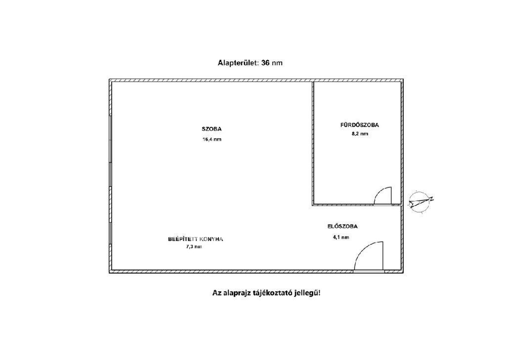Nappali, előszoba, fürdőszoba, valamint konyha áll rendelkezésre a kiváló elrendezésű lakásban.