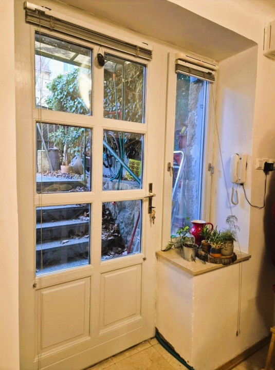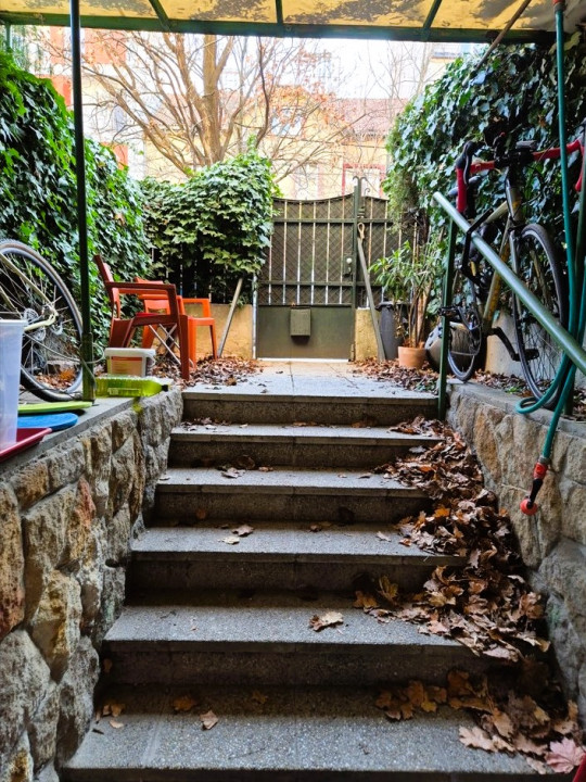 Kis zárt előkert , utcáról nem belátható.