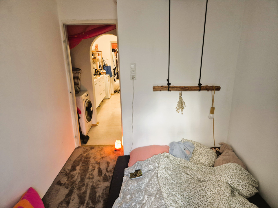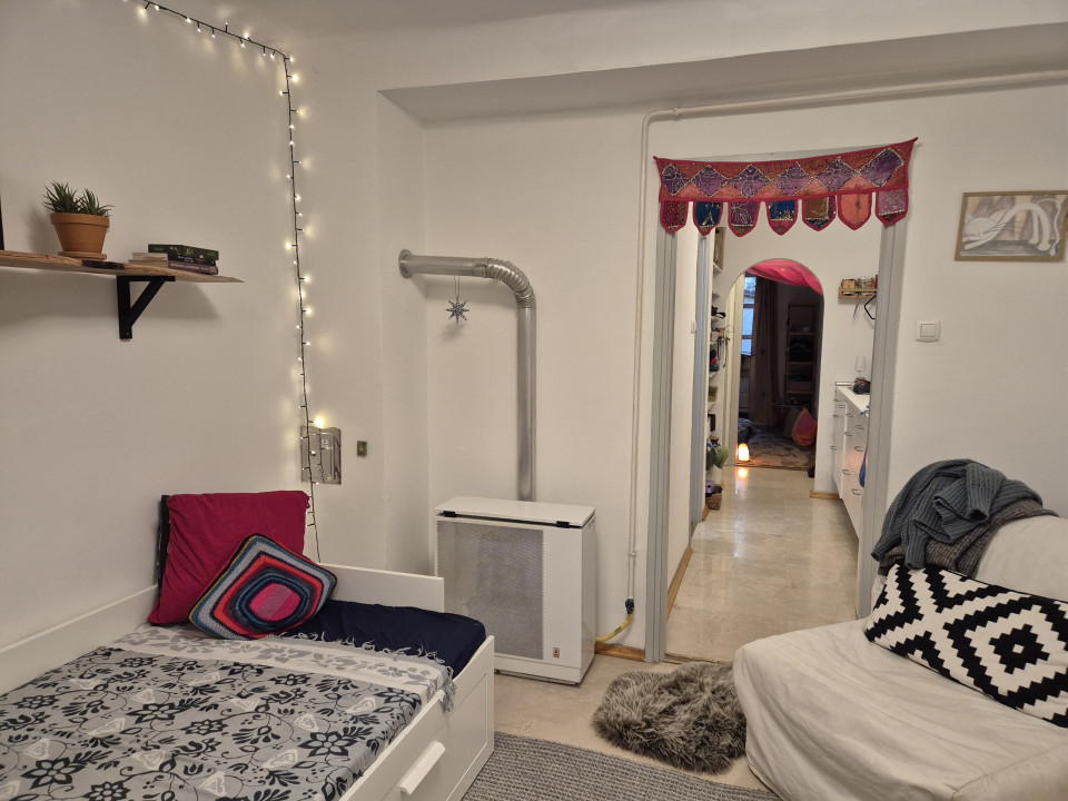 A lakásba belépve nappali, a bejárat előtt leválasztva előtér,
