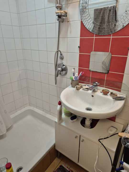 Felújított, - ABLAKOS - benne zuhanytálca, 15 cm-es peremmel.