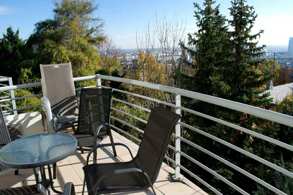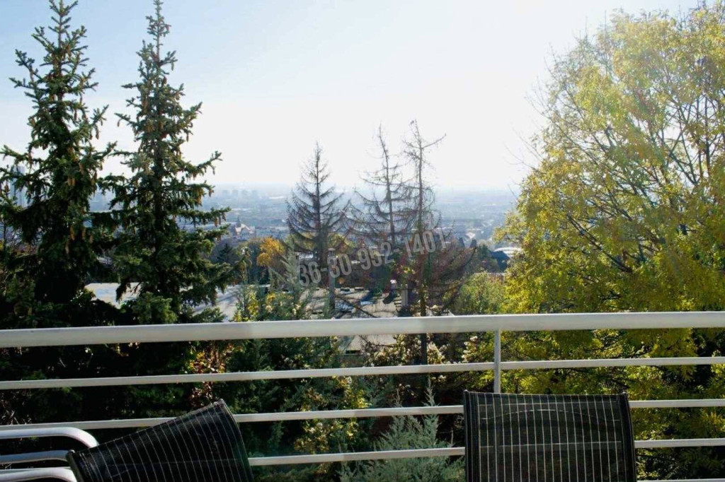 A teraszról a budai hegyekre s a Dunára is rálátni .