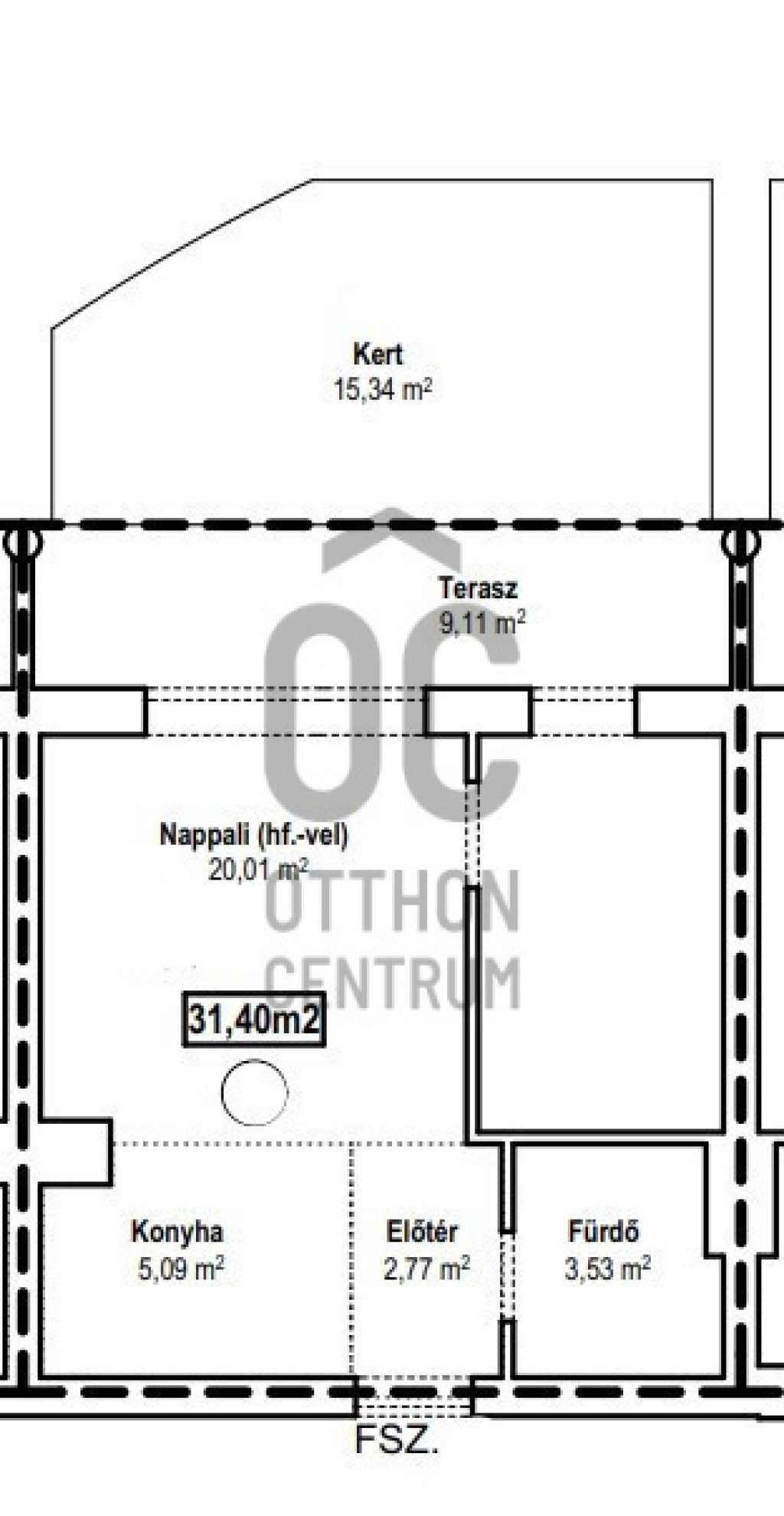 - saját kertrész 15,34 m2