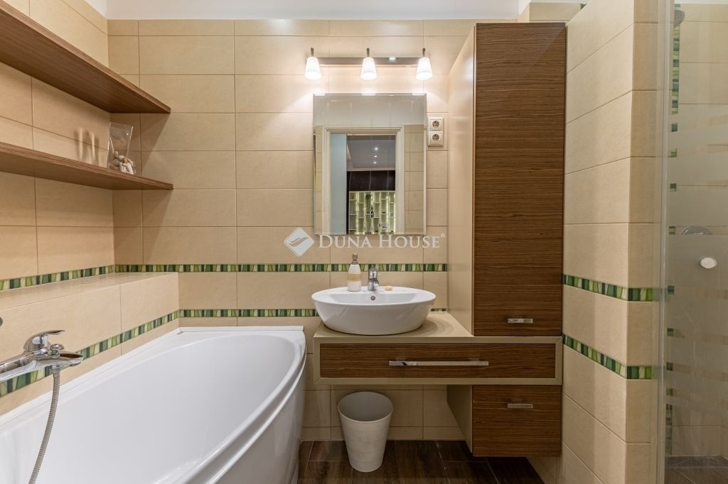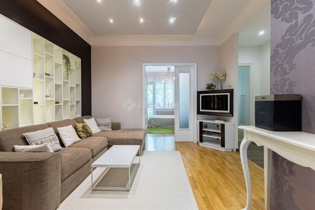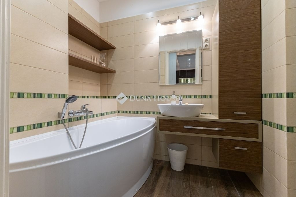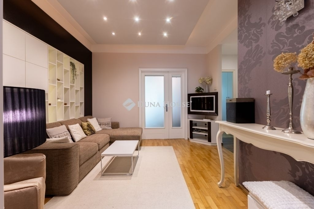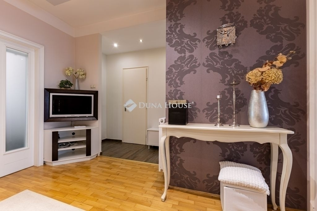 A szobák aljzatában a régi, halszálkában rakott, valódi parkettet felszedték és modern divatos módon, kötésben tették vissza. Az egyéb helyiségek kerámia lappal burkoltak. Számos gipszkarton dobozolással, modern tereket alakítottak ki a különböző hangulatvilágítások elhelyezésére. Átalakításra került a fürdőszoba, ahol egy sarokkád és egy zuhanyzó kapott helyet. A lichthofra szellőztetethető WC, külön-bejárattal érhető el. A lakás nyílászárói az építéskorabeli fa szerkezetek, szépen felújítva, elektromos redőnnyel szerelve, a konyha ablaka hőszigetelő üvegezésű műanyag szerkezet. A konyhában modern konyhabútor került beépítésre, AEG márkájú gépészettel, amely a vételár részét képezi, csakúgy, mint a lakásban található összes egyéb bútor.