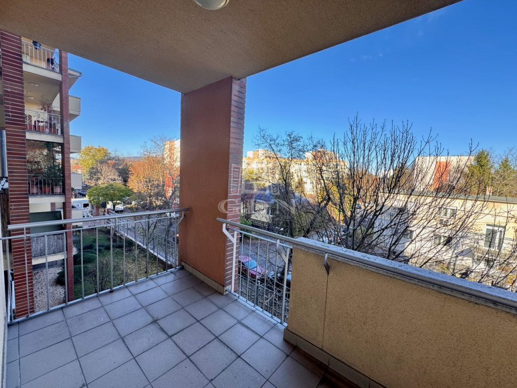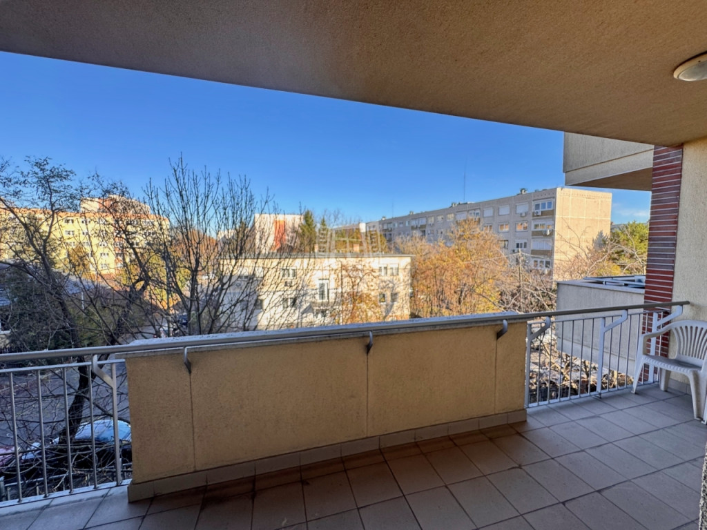 A lakás jó állapotú, modern, praktikusan berendezhető és mindkét szobából kiléphetünk a zöldövezeti kilátást adó nagy erkélyre.