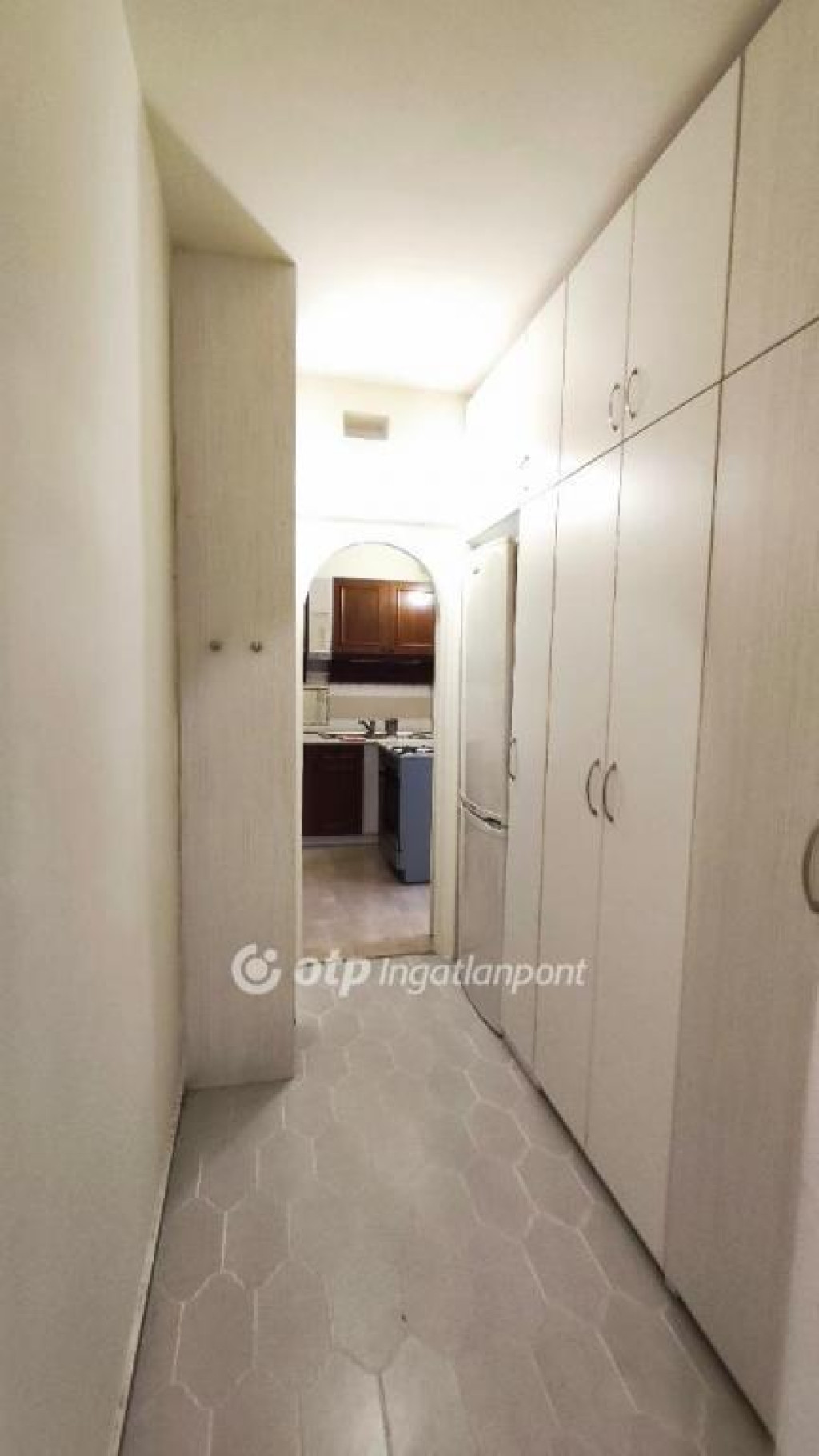 tágas nappali, külön hálószoba, konyha beépített elszívóval, előtér beépített szekrénnyel, közlekedő, amely végig beépített szekrényekkel biztosít extra tárolóhelyet.