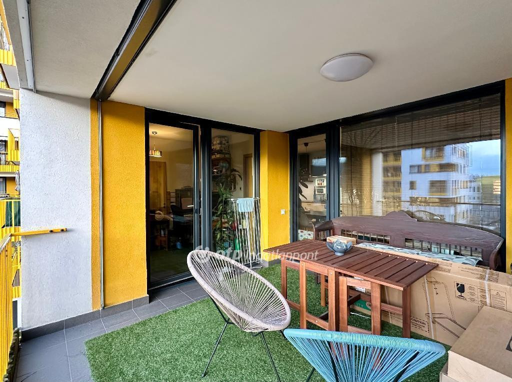 A lakás a 3. emeleten helyezkedik el, alapterülete 80 nm, amelyhez egy 15 nm-es, tágas fedett terasz is kapcsolódik. A vételár részét képezi egy udvari gépkocsibeálló is.