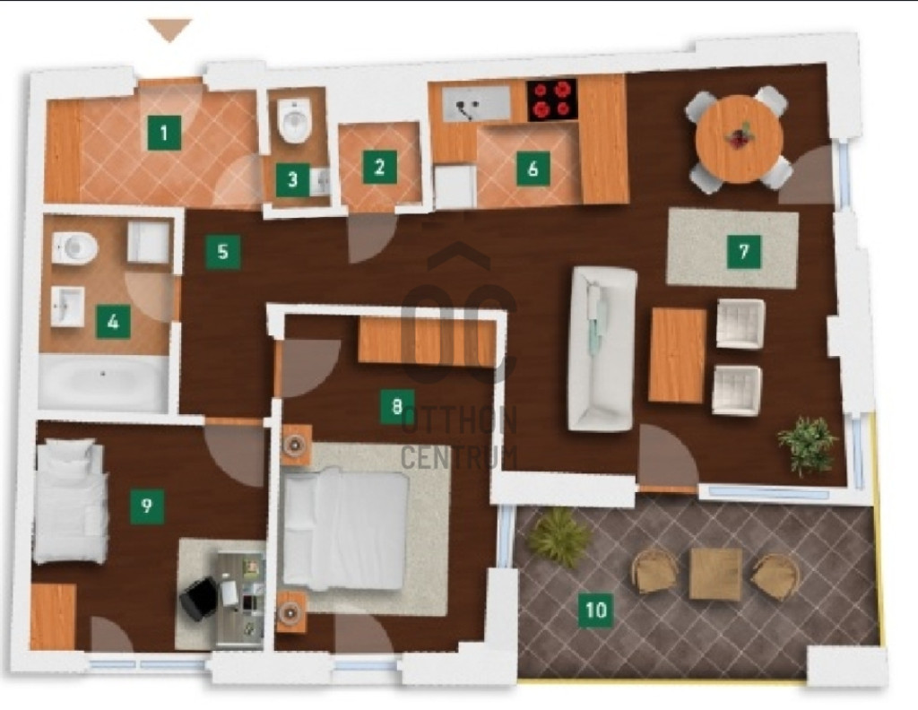 Az ingatlan déli fekvésének köszönhetően egész nap világos, a rezsiköltségek pedig a modern szigetelésnek és a házközponti hűtés-fűtésnek köszönhetően rendkívül alacsonyak.