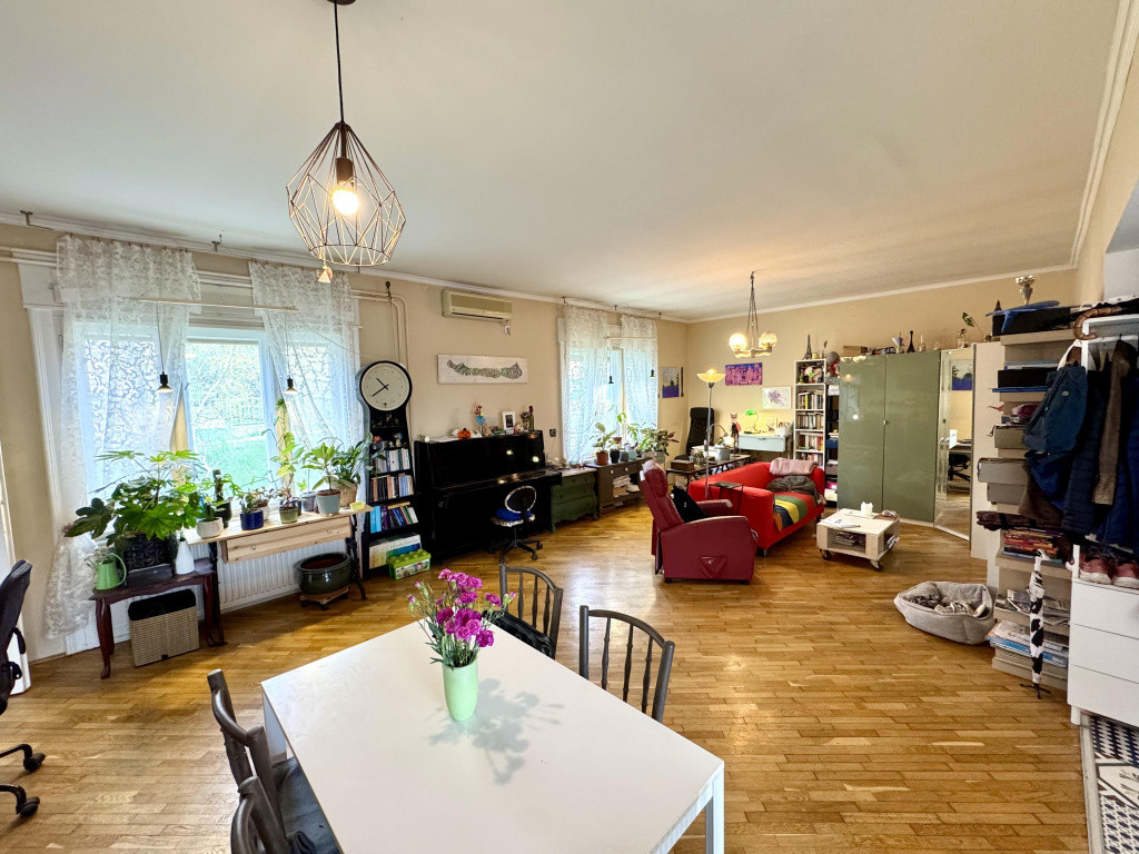 Rendkívül frekventált, zöldövezeti környéken található a Sashegy lábánál, egy 1950-es években épült, 4 lakásos, 3 szintes társasház 1. és 2. emeletén.