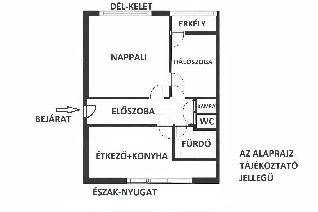 A nappali és a hálószoba külön nyílik, így az elrendezés praktikus és jól élhető.