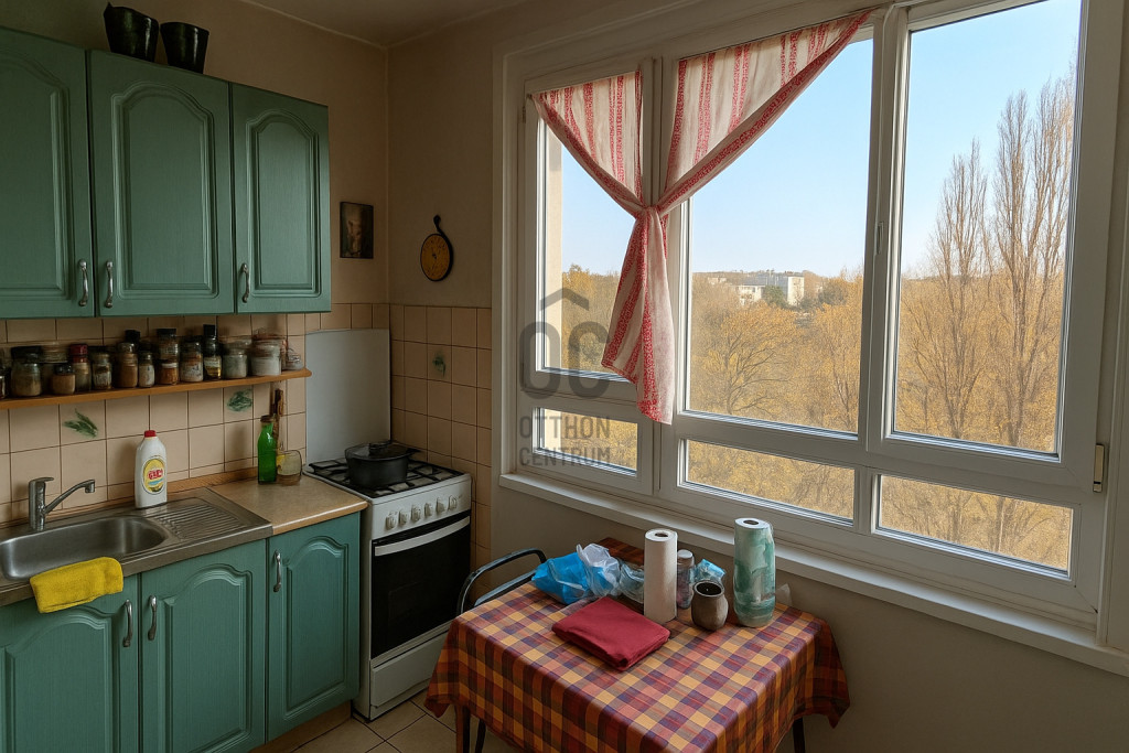 A ház a panelprogram keretein belül felújításra került. A lakásba belépve kényelmes méretű előszoba-közlekedő fogad, amelyből jobbra nyílik a hálószoba, szemben a nappali, balra pedig a konyhába vezető közlekedő és az innen nyíló fürdőszoba illetve a külön WC.