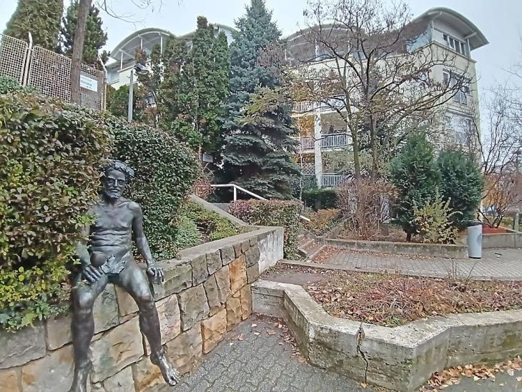 A társasház és a közös kert is szépen karbantartott és gondozott.