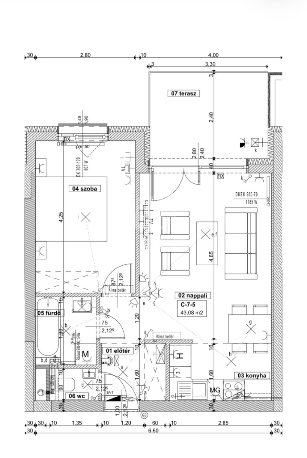 Lakás 43,08 nm, terasz 8,48 nm