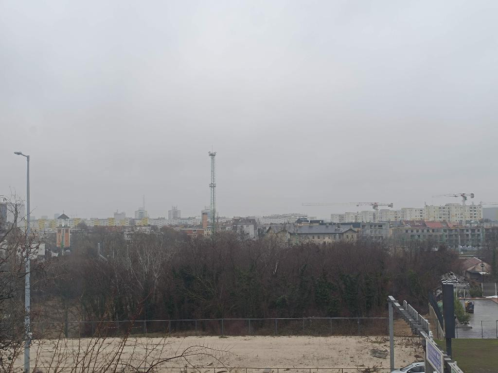 A szobák a kertre és a Budaörsi útra néznek, a panoráma Kelenföld felett egészen a MOL toronyig ellát.